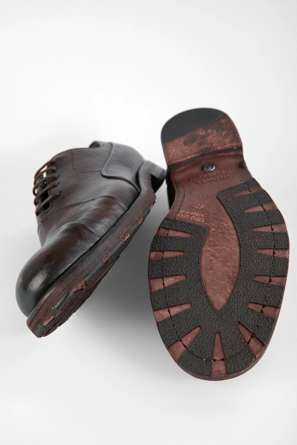 Urban-smart in its essence, these luxurious shoes are shaped to a modern oxford silhouette with a lace-up front and an artfully handcrafted outsole. This stunning style features sophisticated folded stitching details and elegant shades and nuances of a vibrant dark chestnut brown, the result of an array of colouring and ageing treatments. Perfect for a smart occasion, these shoes are sure to draw the eye on any occasion.