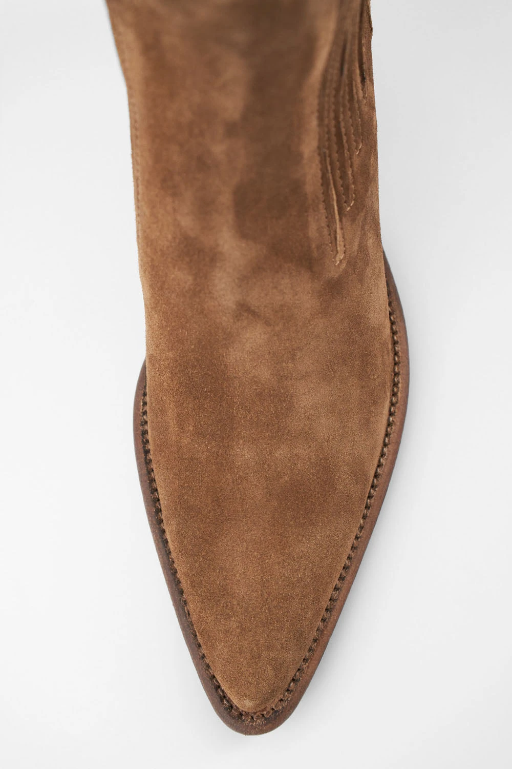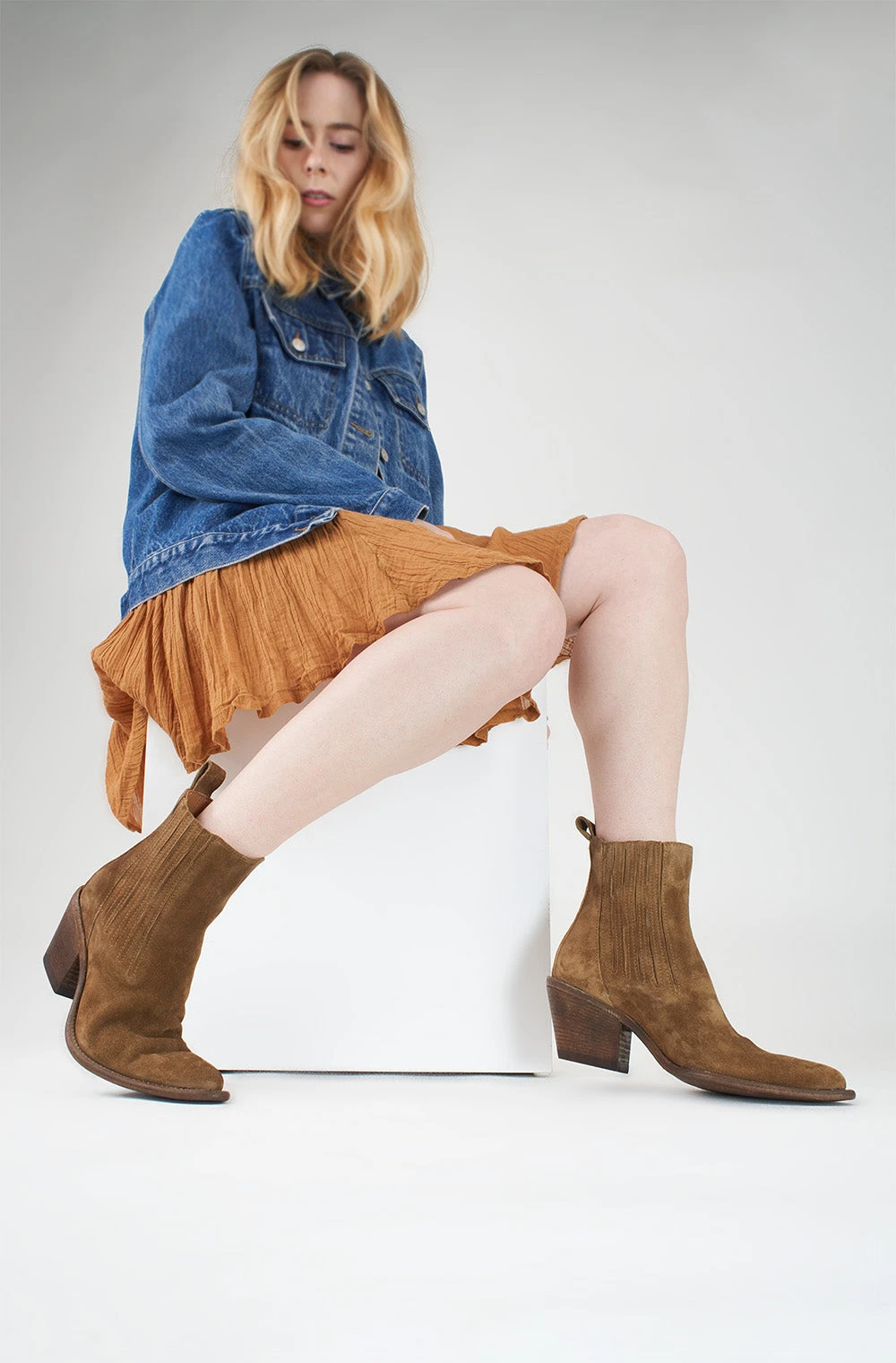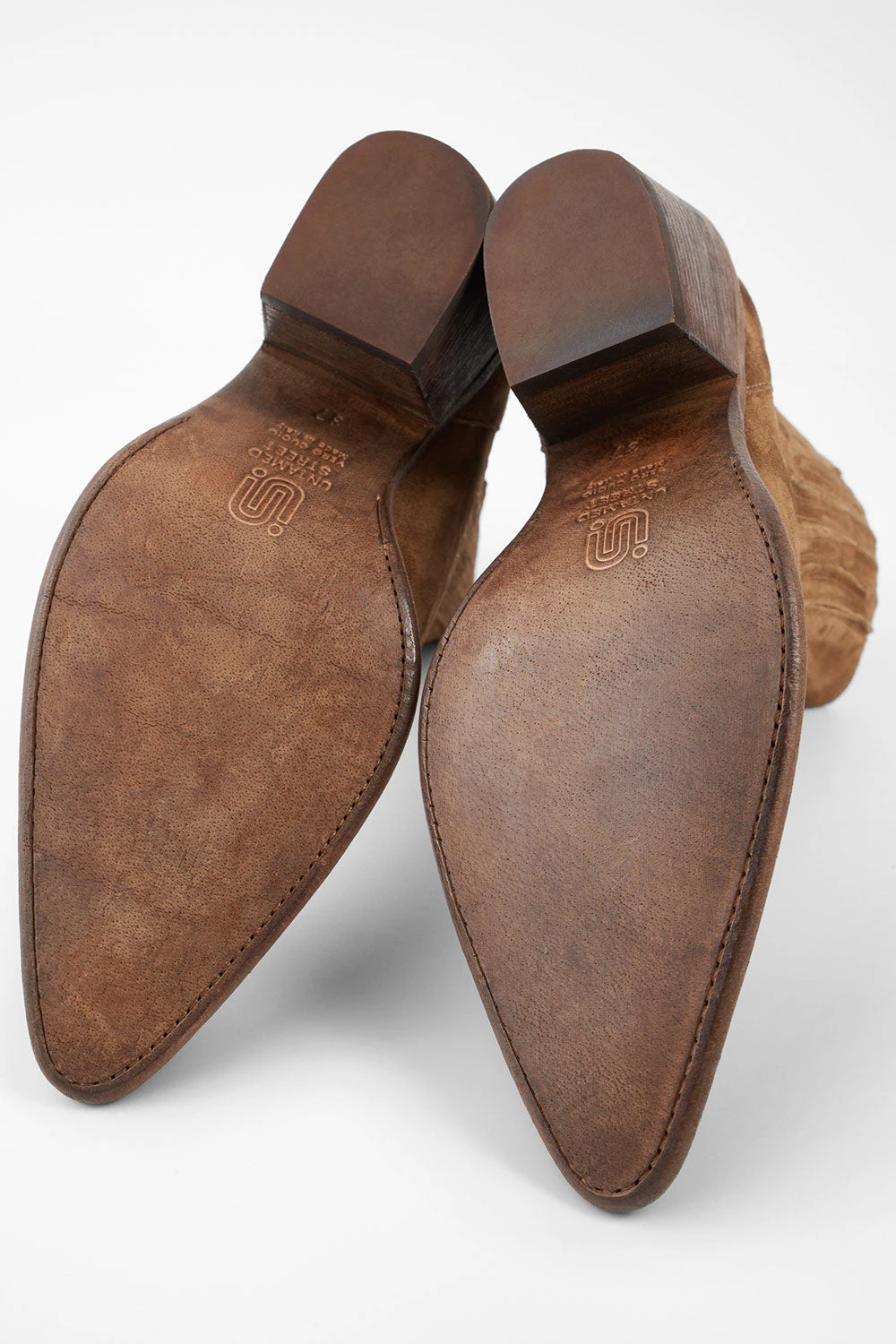 Made with love and an eye for detail, these western-inspired Chelsea boots are more than just footwear. Each stitch tells a story of tradition, while the luxurious feel of the suede is a promise of comfort and style; the leather sole, carefully distressed to perfection, grounds you in unmatched durability and support.