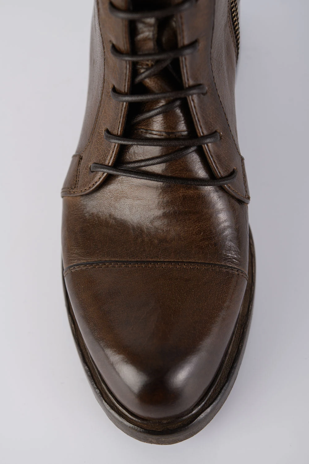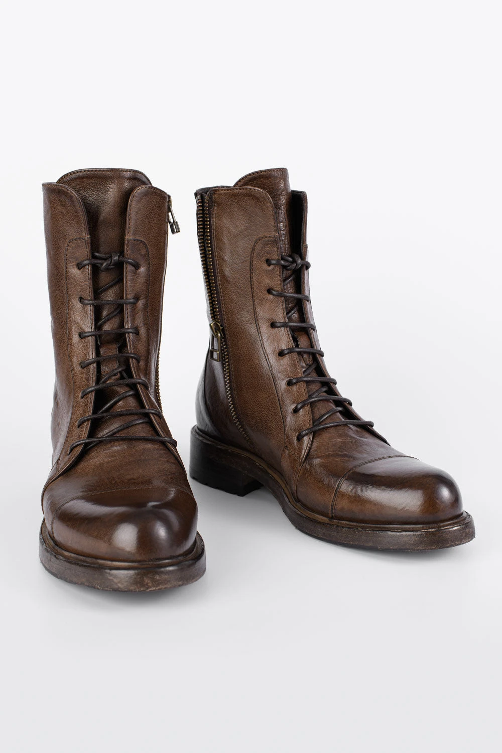 The flat heel has straight lines and is paired with a leather outsole with a rubber injection, for enhanced grip and durability. The waxed cotton laces can be fastened to the top or halfway up, for a more relaxed vibe. An internal zipper ensures a fitted silhouette, without having to lace and unlace your boots on every wear.