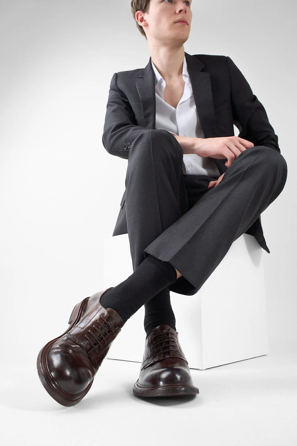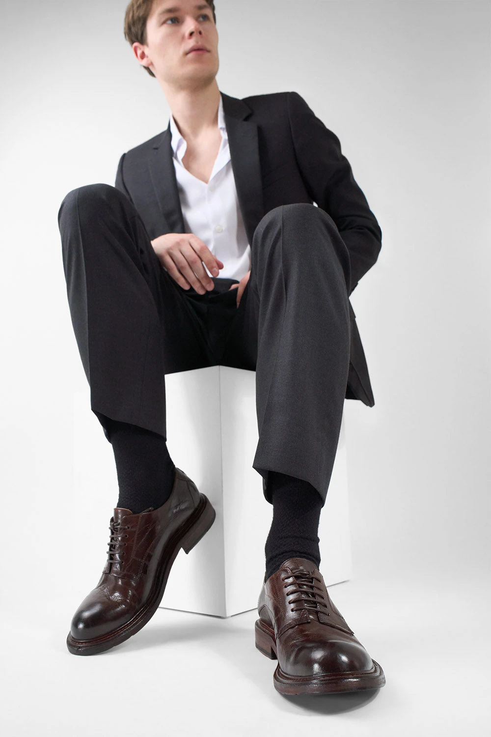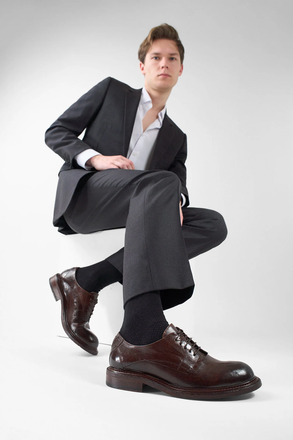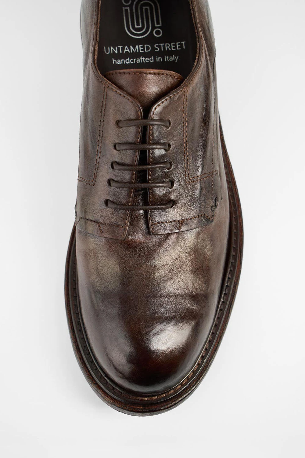 Urban luxury in its essence, the BOLTON derby is a handcrafted piece of emotion, a true celebration of Italian mastery. The finest horse leather is stonewashed and hand-brushed to achieve a rich brown hue finish that shimmers with a rare, iridescent depth. This artisanal touch gives this noble material a unique character, capturing light and shadow in a way that transforms it with every wear.