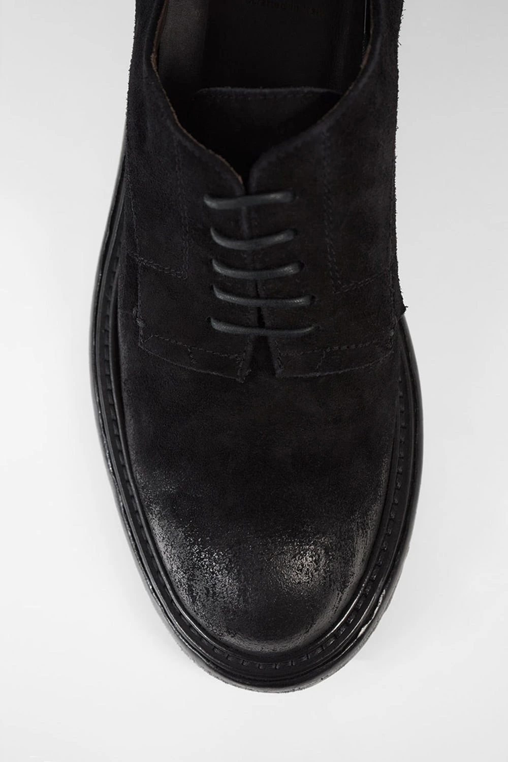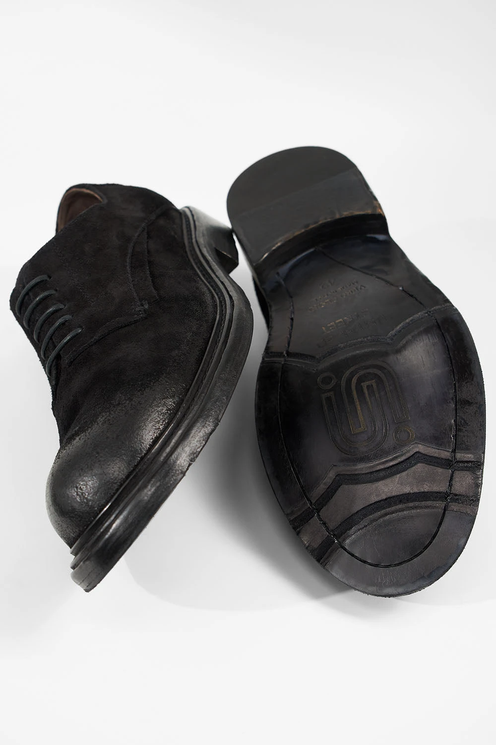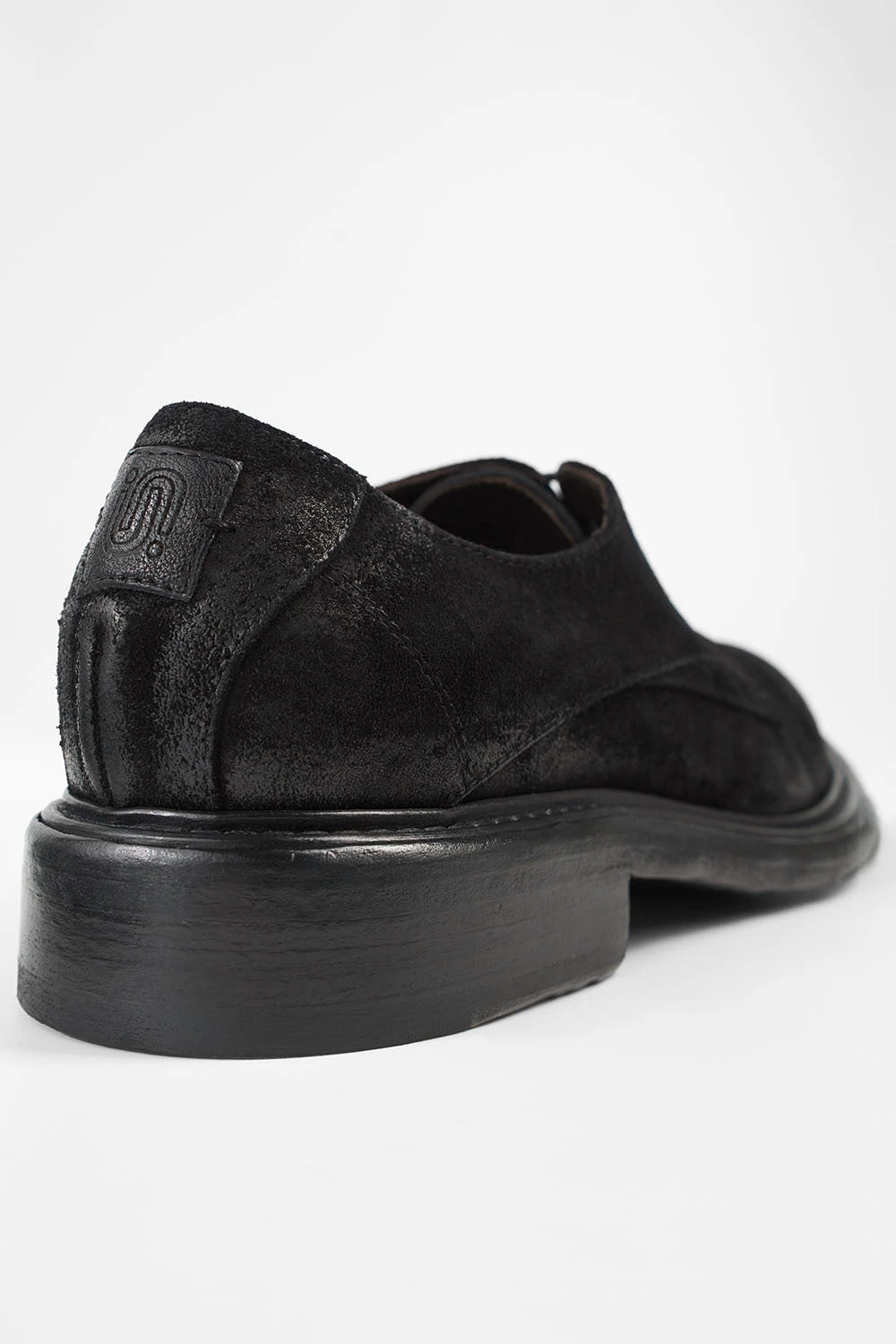 Urban luxury in its essence, the BOLTON derby is a handcrafted piece of emotion, a true celebration of Italian mastery. The finest suede, adorned with intricate detailing, is stonewashed, oiled, and hand-brushed to achieve a finish that shimmers with a rare, iridescent depth. This artisanal touch gives the suede a unique character, capturing light and shadow in a way that transforms it with every wear.