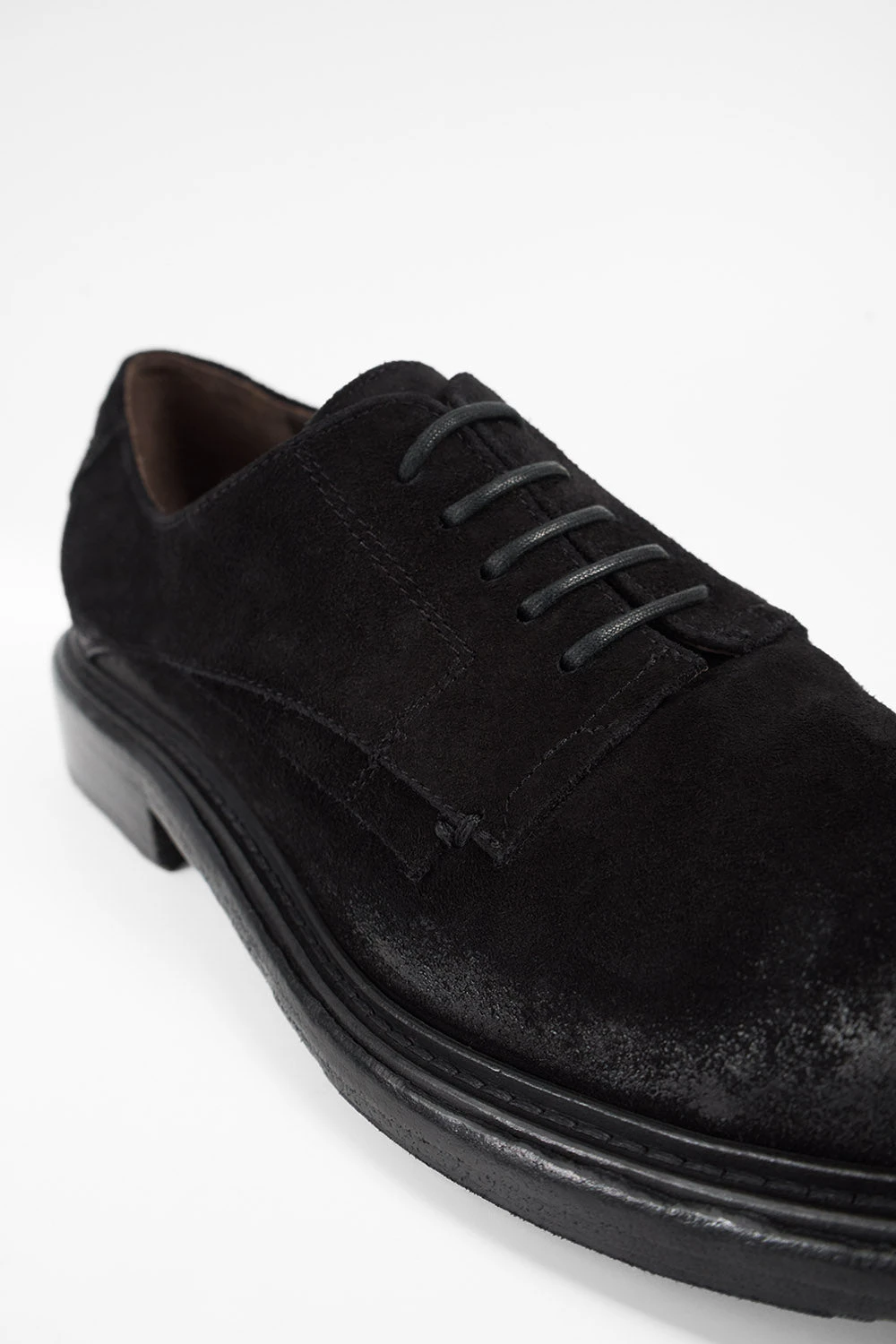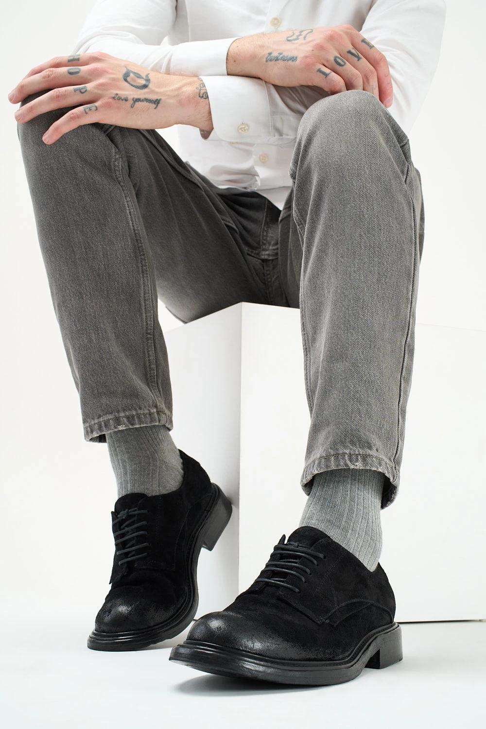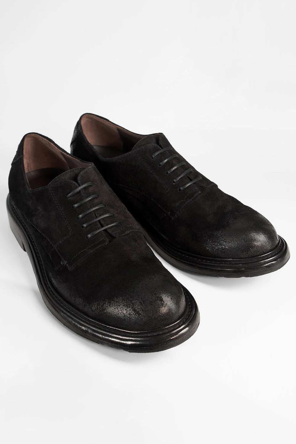 Urban luxury in its essence, the BOLTON derby is a handcrafted piece of emotion, a true celebration of Italian mastery. The finest suede, adorned with intricate detailing, is stonewashed, oiled, and hand-brushed to achieve a finish that shimmers with a rare, iridescent depth. This artisanal touch gives the suede a unique character, capturing light and shadow in a way that transforms it with every wear.