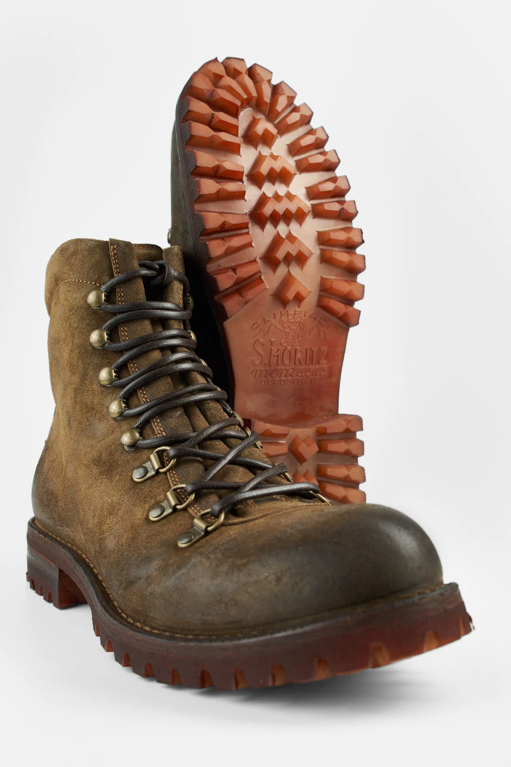 The Untamed Street urban take on mountain boots: bold, rugged, eye-catching; a powerful addition to your winter range. Made with the most exclusive Italian oiled calf suede, waxed in a barrel to make it more water resistant and durable, and to create a beautiful bouquet of wild brownish tones, this style is given a contemporary twist and rock overtones with the addition of a chunky St Moritz lug sole for traction and comfort. The strong Blake stitched construction gives this boot real durability under all weather conditions.
