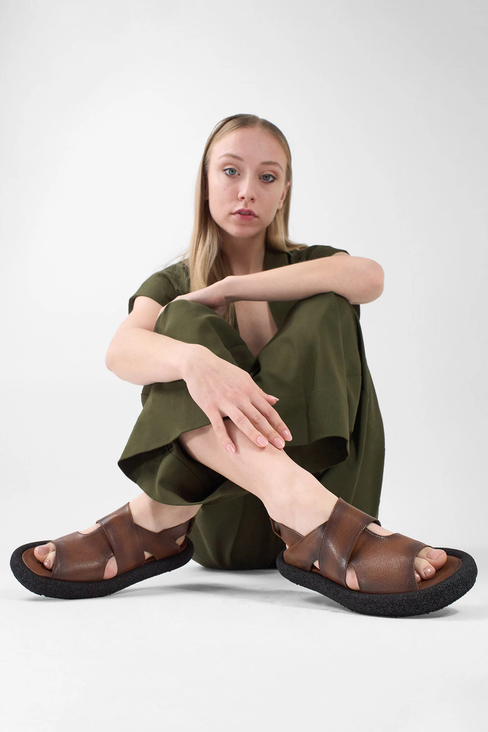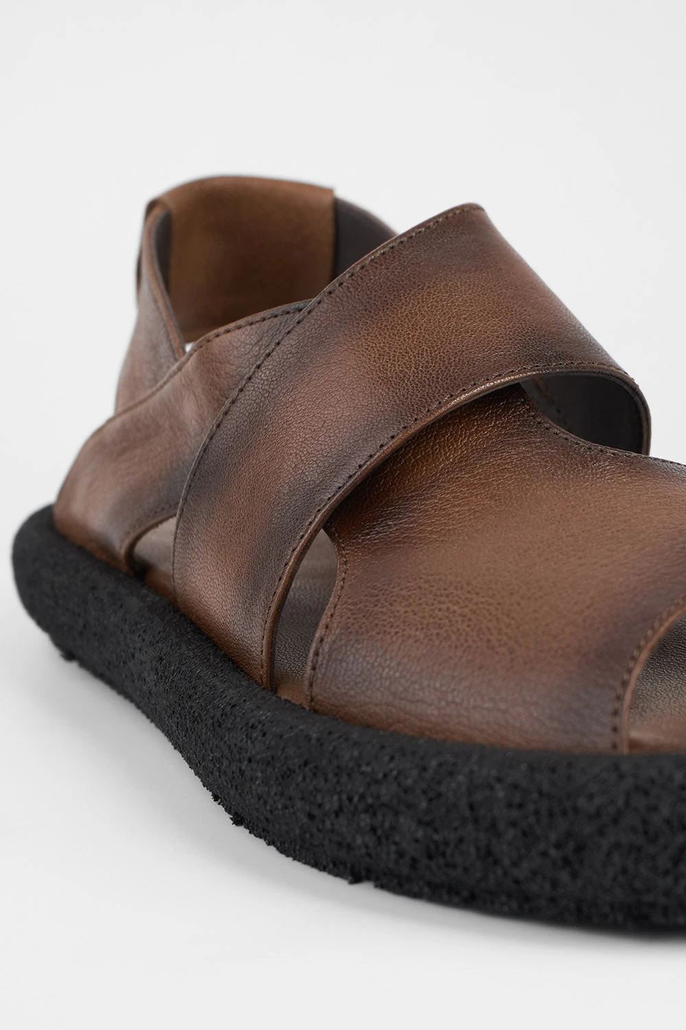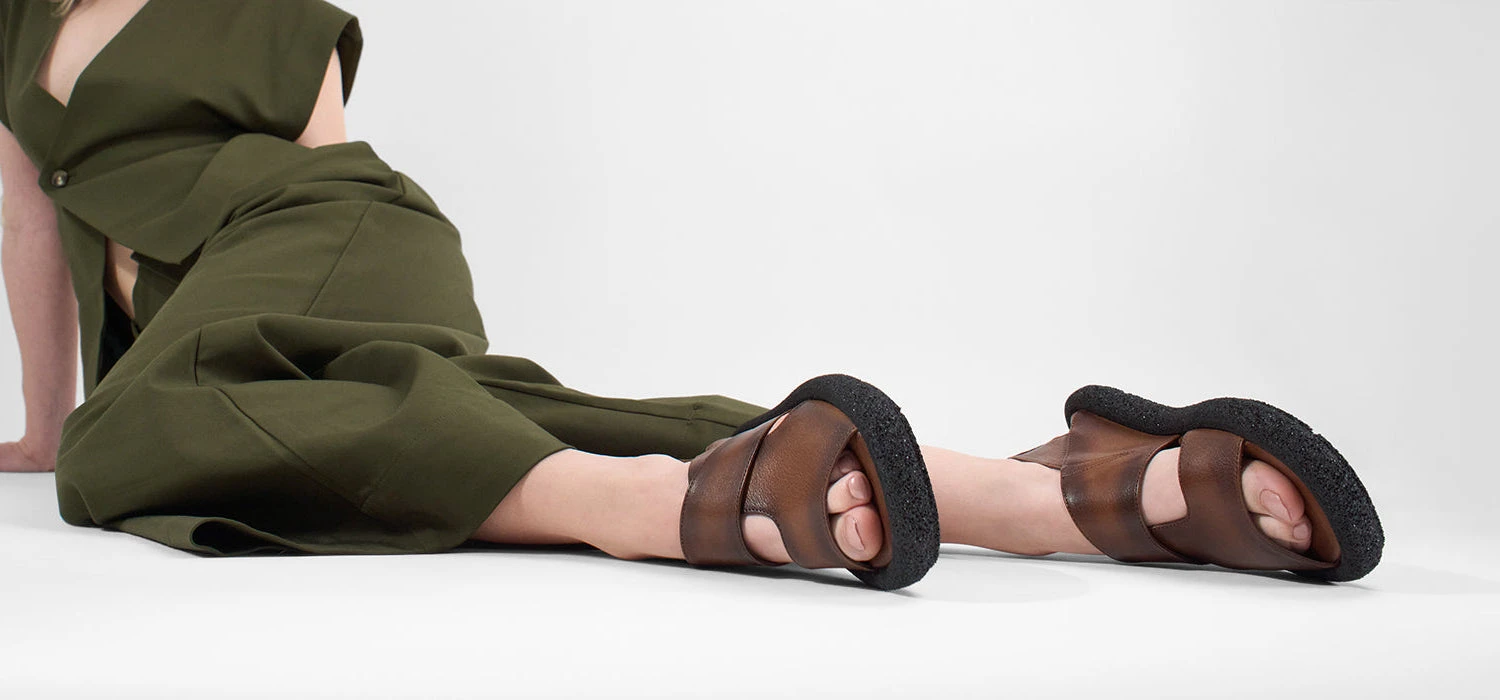 An intricate cut-out design lightens-up this contemporary and elegant leather sandal, that embodies all the spirit of our brand. The upper is made of soft, supple goatskin, beautifully dyed and patina-finished, with and open workout showcasing a bold, obliquus-cut toe and a leather-covered elasticated back.The ultralight RUBREX outsole with its built-in cushioned footbed that guarantees all-day wear and comfort with every step.