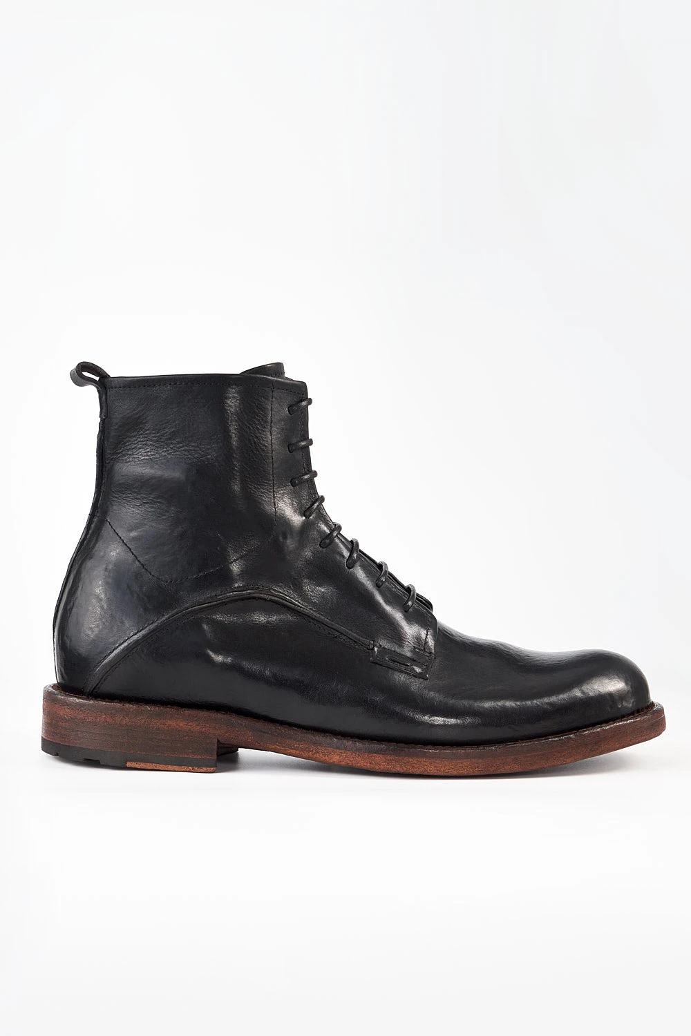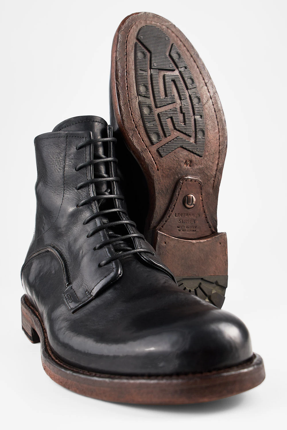 This exquisite handmade boot is the contemporary incarnation of artisanal craftsmanship. The finest full-grain calf leather is hand-dyed, stonewashed and vigorously brushed. The upper is Blake-stitched onto a hand-built leather outsole with an eye-catching rubber insertion. Ideal for the gentleman traveller and the city dweller, this boot adds a distinctive rock&roll touch to any attire.