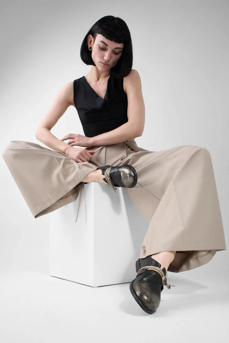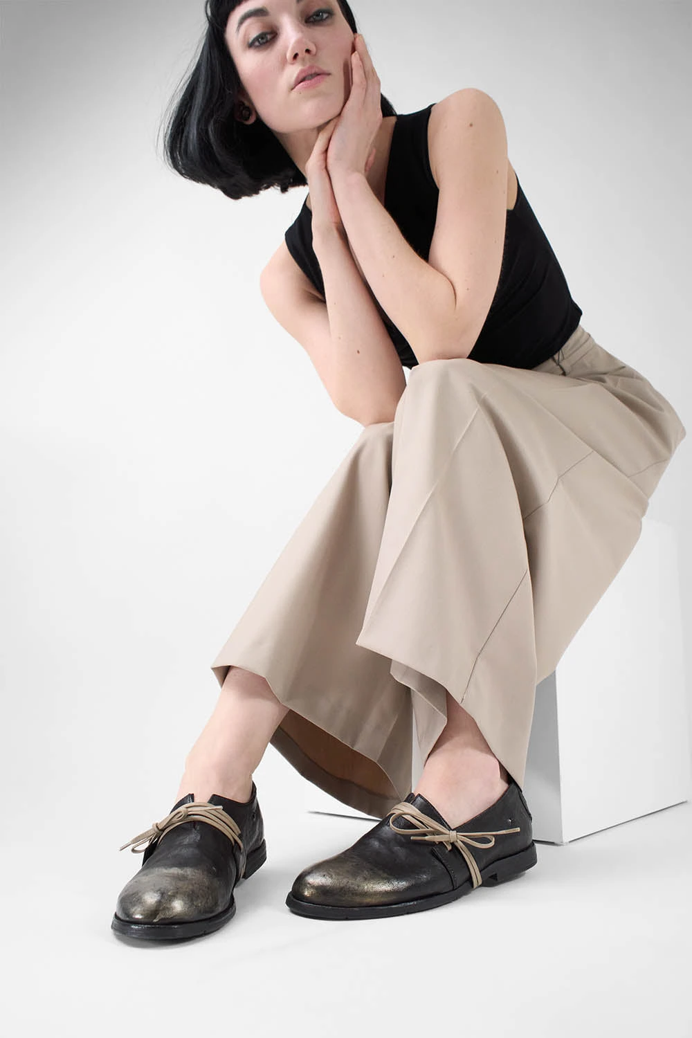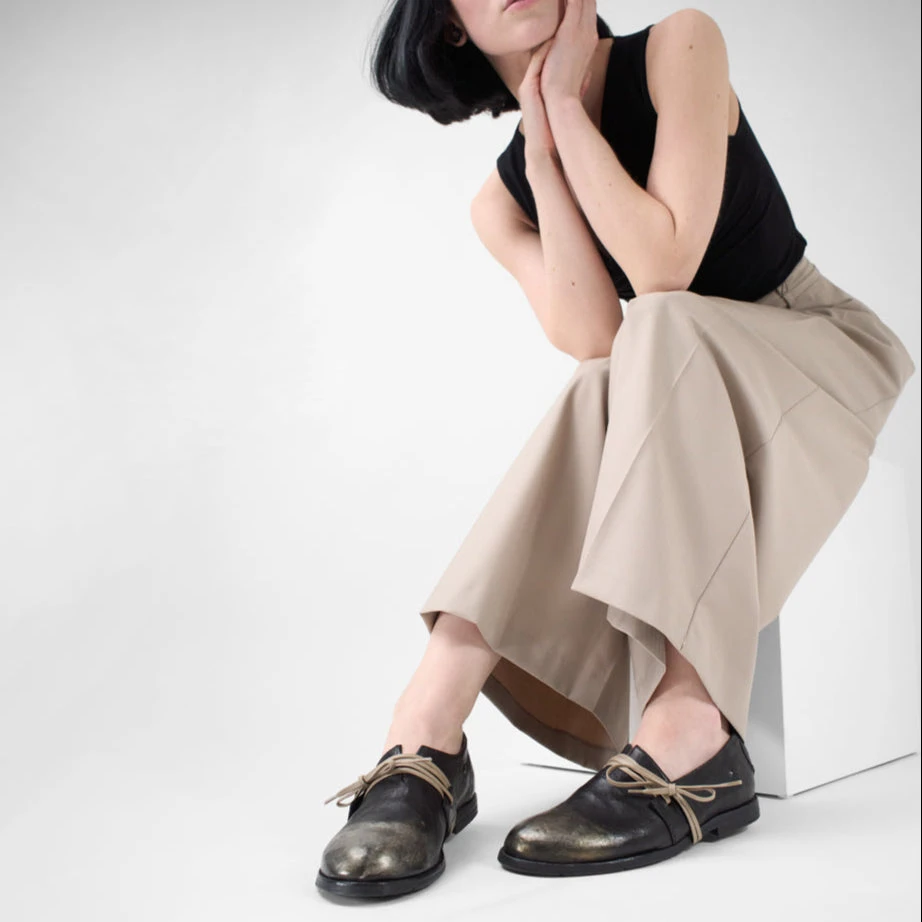 Handcrafted in Italy from soft, scrunched buffalo leather and lustrous metallic finishes, and designed with your comfort in mind, these HARPER flats combine clean lines with rich textures, while the long laces in contrasting colour wrap gracefully under the sole, adding a touch of sophistication that elegantly envelops your foot.