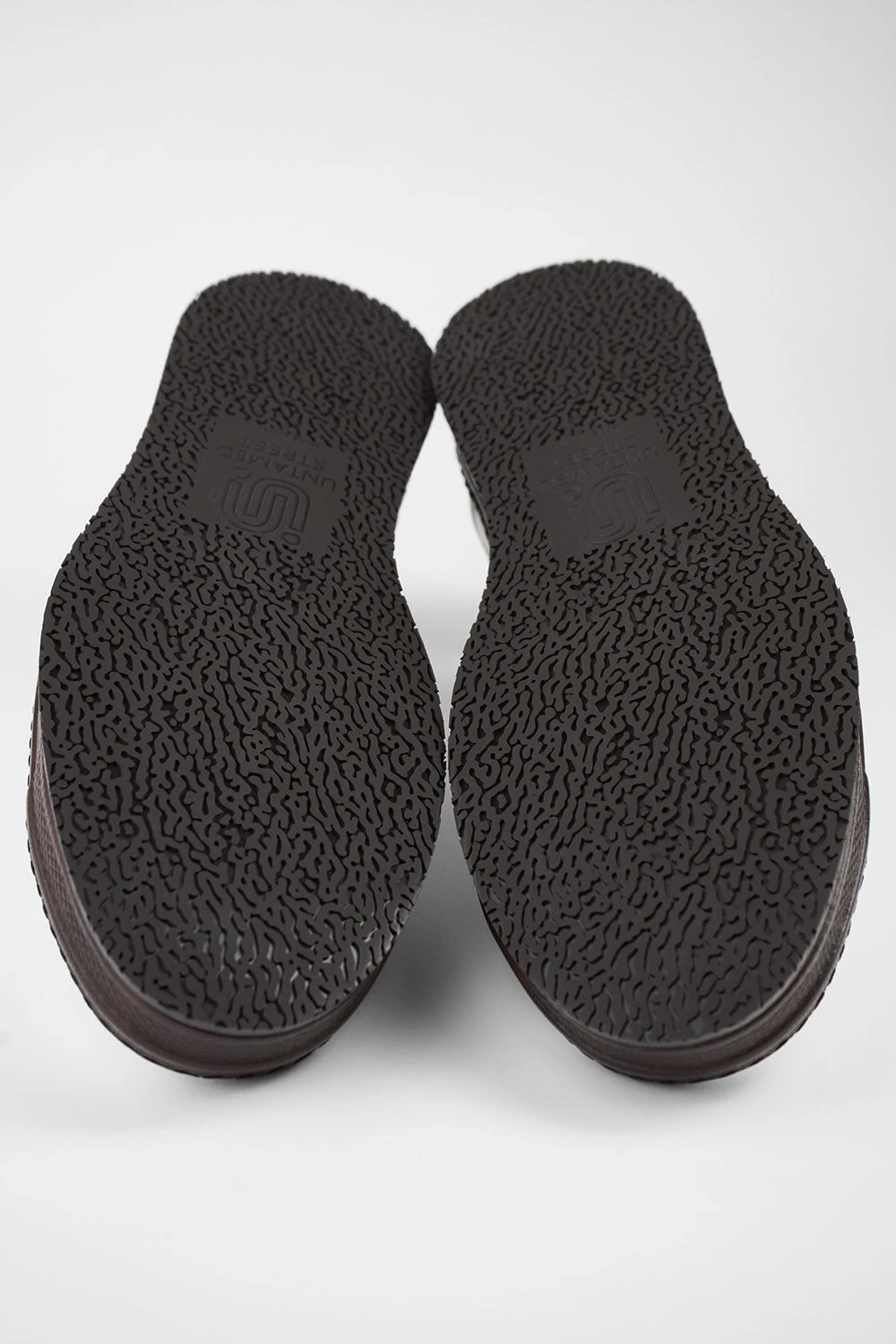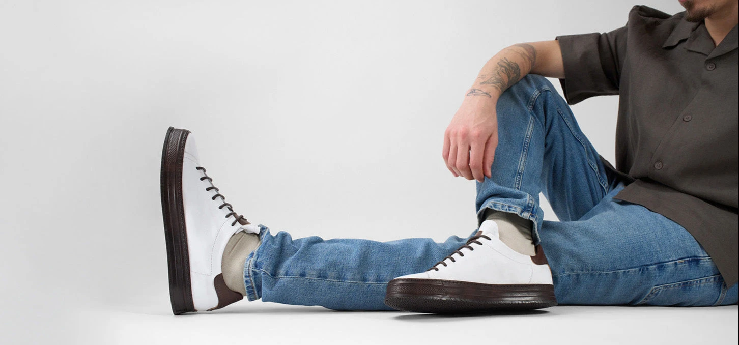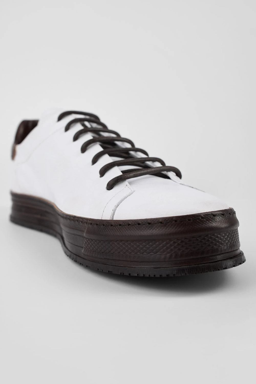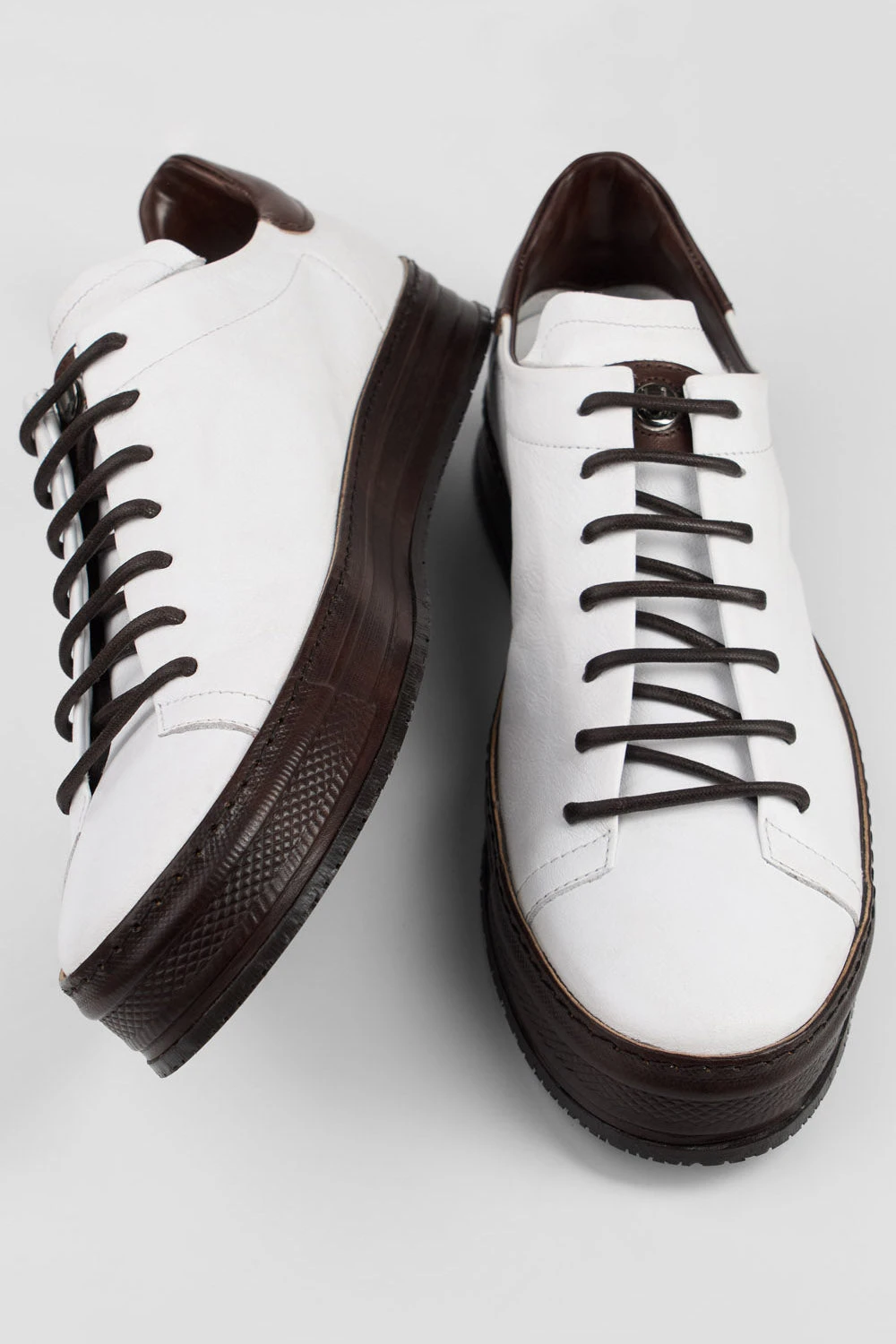 Featuring the perfect blend of elegance, durability, and comfort, our HAYES premium leather sneakers are handcrafted in Italy, in the heart of the Marche footwear district. The luxurious, bright white calf leather beautifully offset the dark brown laces and details with striking contrast. The bold looking upper, with its sharp derby lacing, sits on an elaborate, hand-built cupsole featuring a rubber tread and an eye-catching leather wrap in contrasting colour that covers the entire profile, further adding to the sophistication and uniqueness of these sneakers. A versatile choice for your off-duty or weekend wardrobe, a perfect blend of exceptional quality and versatility that elevates all your less formal attires.