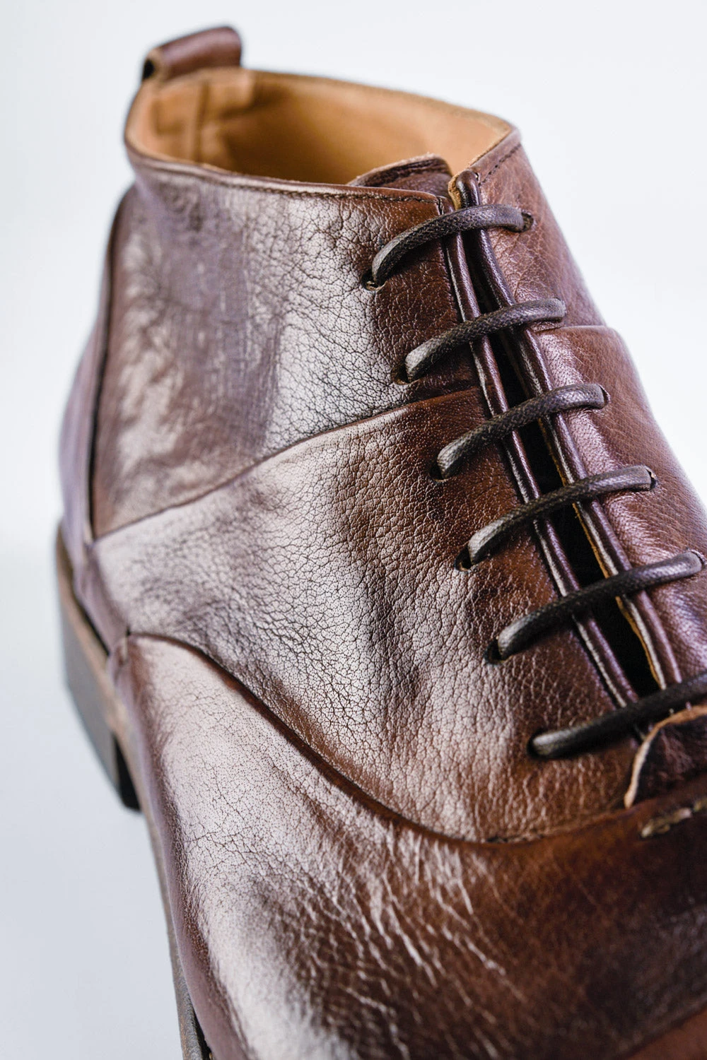 The KNIGHTON EDGE chukka boot perfectly captures the Untamed Street philosophy: timeless elegance and obsession with craftsmanship. This versatile style oxford lace-up features sophisticated folded details made of luxurious buffalo leather, the signature of the EDGE collection, in elegant shades and nuances of rich brown. Finished with a stunning Blake stitched leather outsole with an elaborate rubber injection, this light boot will shine through no matter what you pair it with.