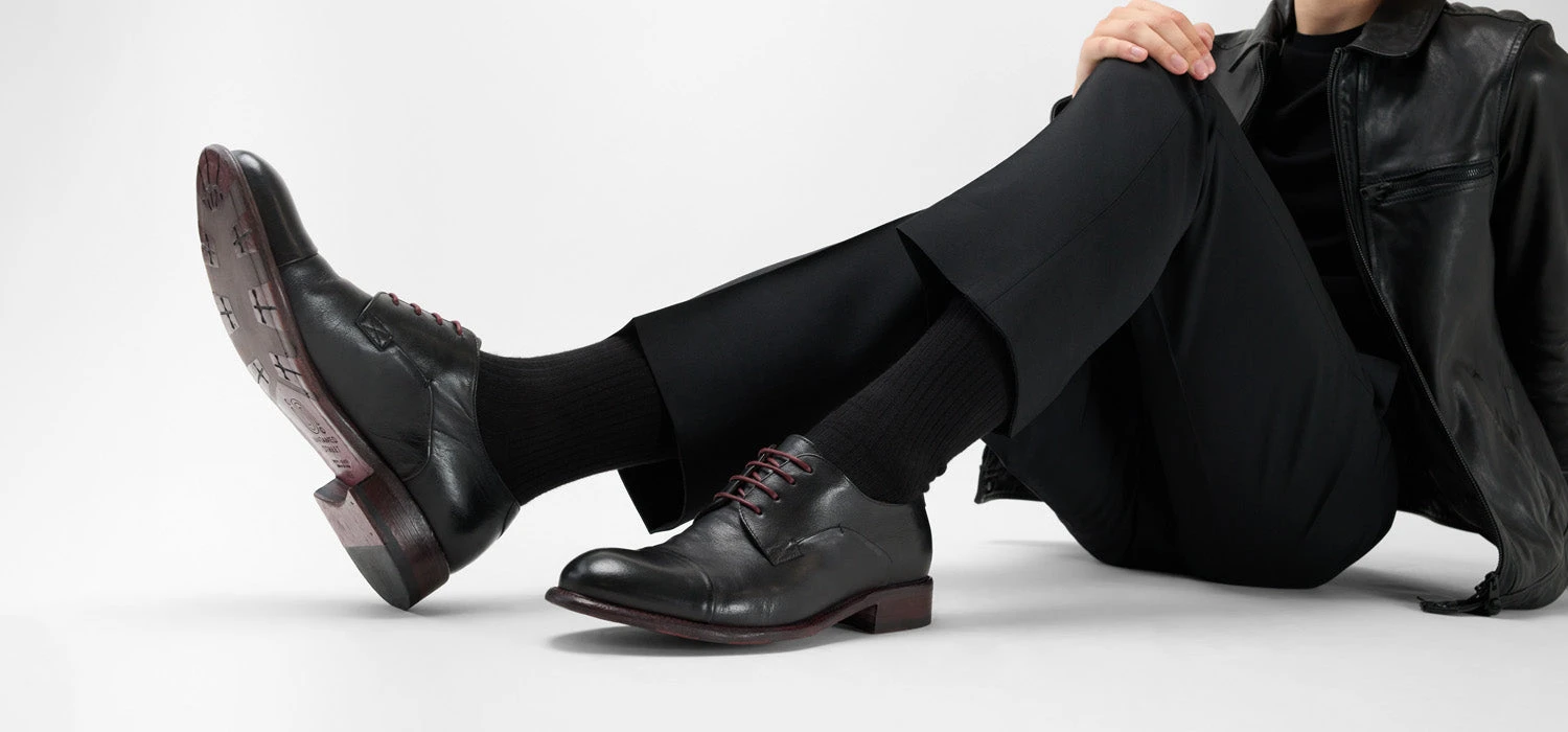 Gritty and glamorous, informal and classic at the same time, our KNIGHTON oxford combines an elegant design with eye-catching details. Striking the perfect balance between tradition and versatility, this shoe is handcrafted in the finest vegetable-tanned buffalo leather, and features and premium calf leather lining and footbed and a sleek leather sole with our new personalised rubber forepart. The traditional Blake construction is complemented with clean folded seam stitching and by our signature stone-washing finishing.