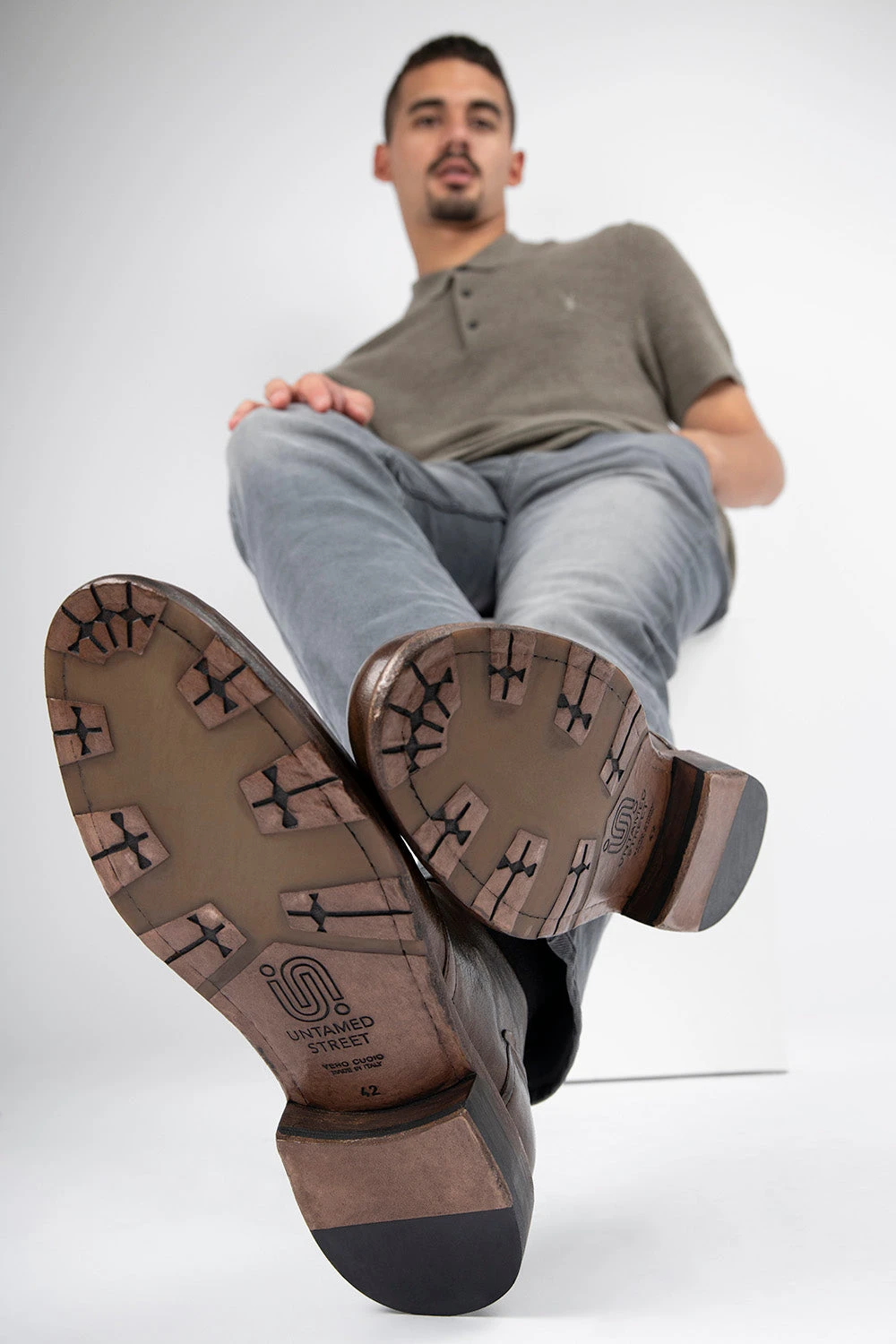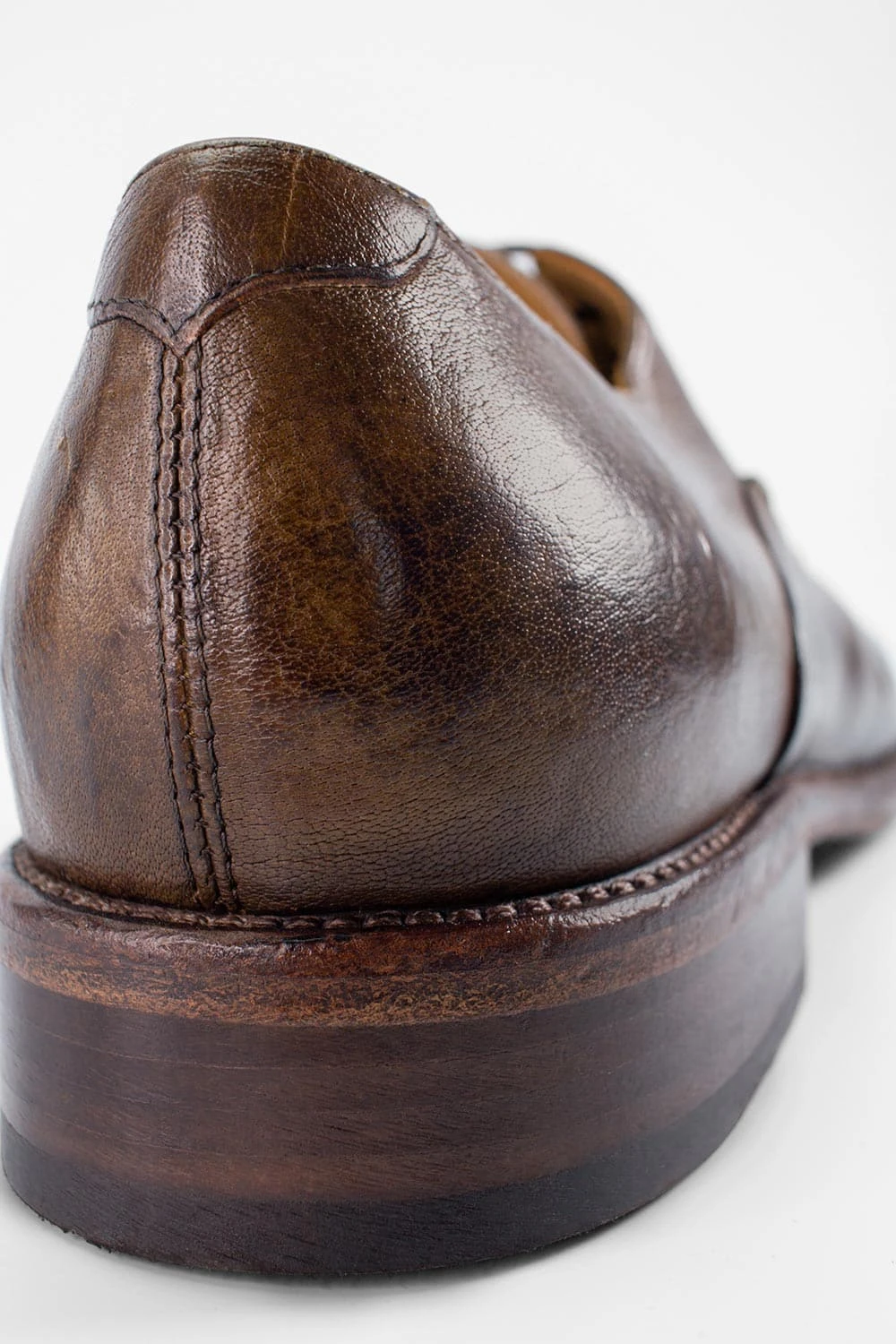 Featuring a new, sleek leather sole with a beautifully shaped rubber injection, the new KNIGHTON derby is handcrafted in the finest vegetable-tanned buffalo leather.