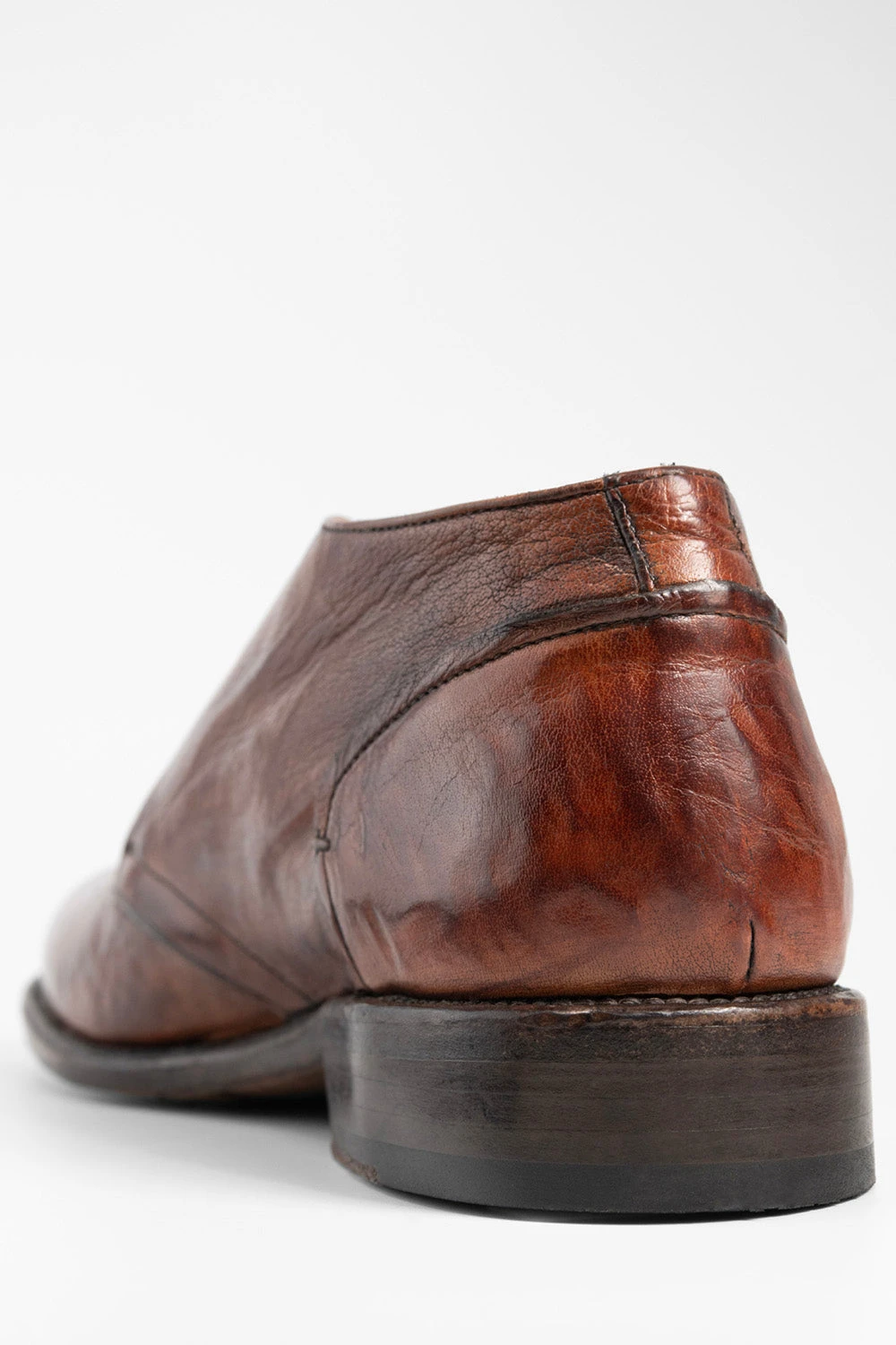 Urban chic in its essence and made of a luxurious buffalo leather, the KNIGHTON low chukka boots perfectly capture the Untamed Street philosophy: timeless elegance and obsession with craftsmanship. Shaped to a modern desert boot silhouette, this versatile style features, sophisticated stitching and elegant shades and nuances of a vibrant light brown, resulting from our signature stone washing process and an array of colouring and ageing treatments—the perfect light boot for the warmer season.