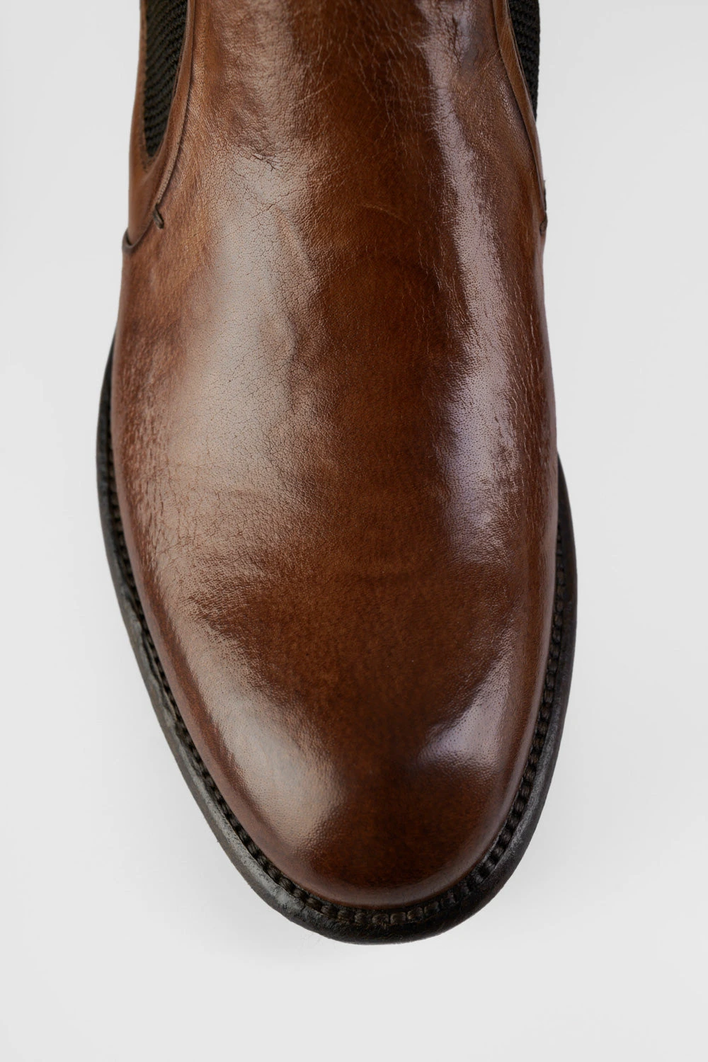 A luxurious low Chelsea boot, re-interpreted in the finest vegetable-tanned buffalo leather, hand-dyed in a lavish mid-brown colour. This unique hue, which adds a great deal of visual interest to the entire shoe, is enhanced by our signature stone washing process and together are sure to attract a lot of positive attention. Featuring elasticated sides, breathable premium calf leather lining and a beautiful rubber-injected leather sole, the KNIGHTON Chelsea boot is a perfect combination of comfort, durability and craftsmanship warmth. For the modern man who demands style, ease and versatility.