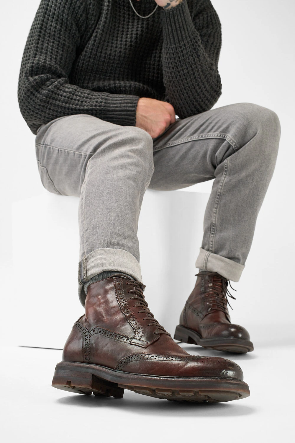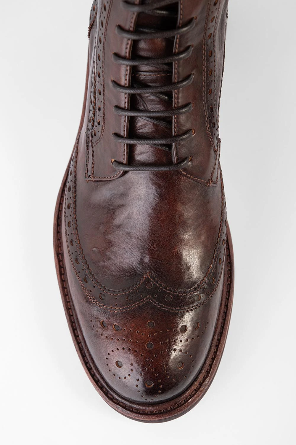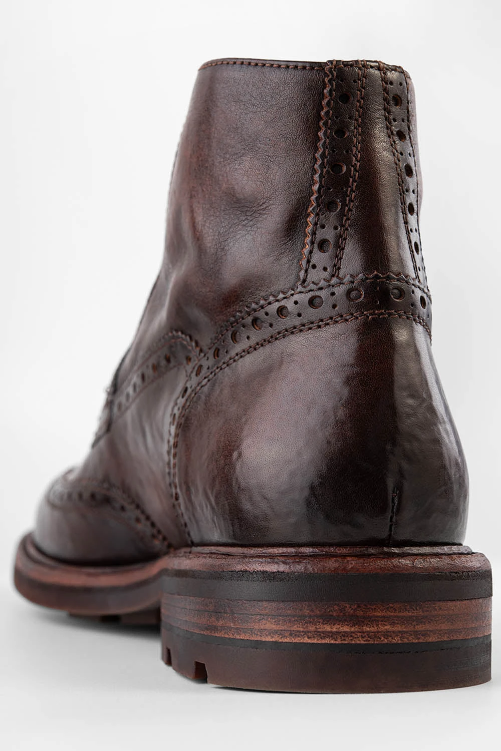 The LENNOX meet modern elegance and centuries-old traditions, representing the ultimate embodiment of urban luxury. Handcrafted with integrity and meticulous craftsmanship in rich Italian vegetable-tanned leather, this style blends comfort, and durability. The finest, full-grain Italian leather, artfully stonewashed and distressed, meets the classic flair of the brogue detailing, with the delicate perforations and decorative stitching of the upper exuding character and sophistication.