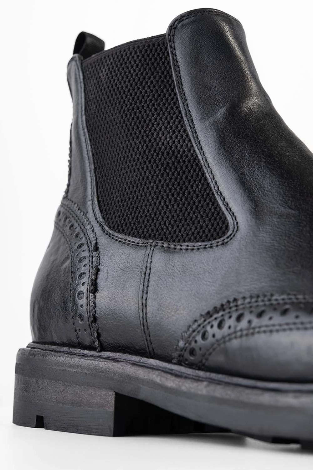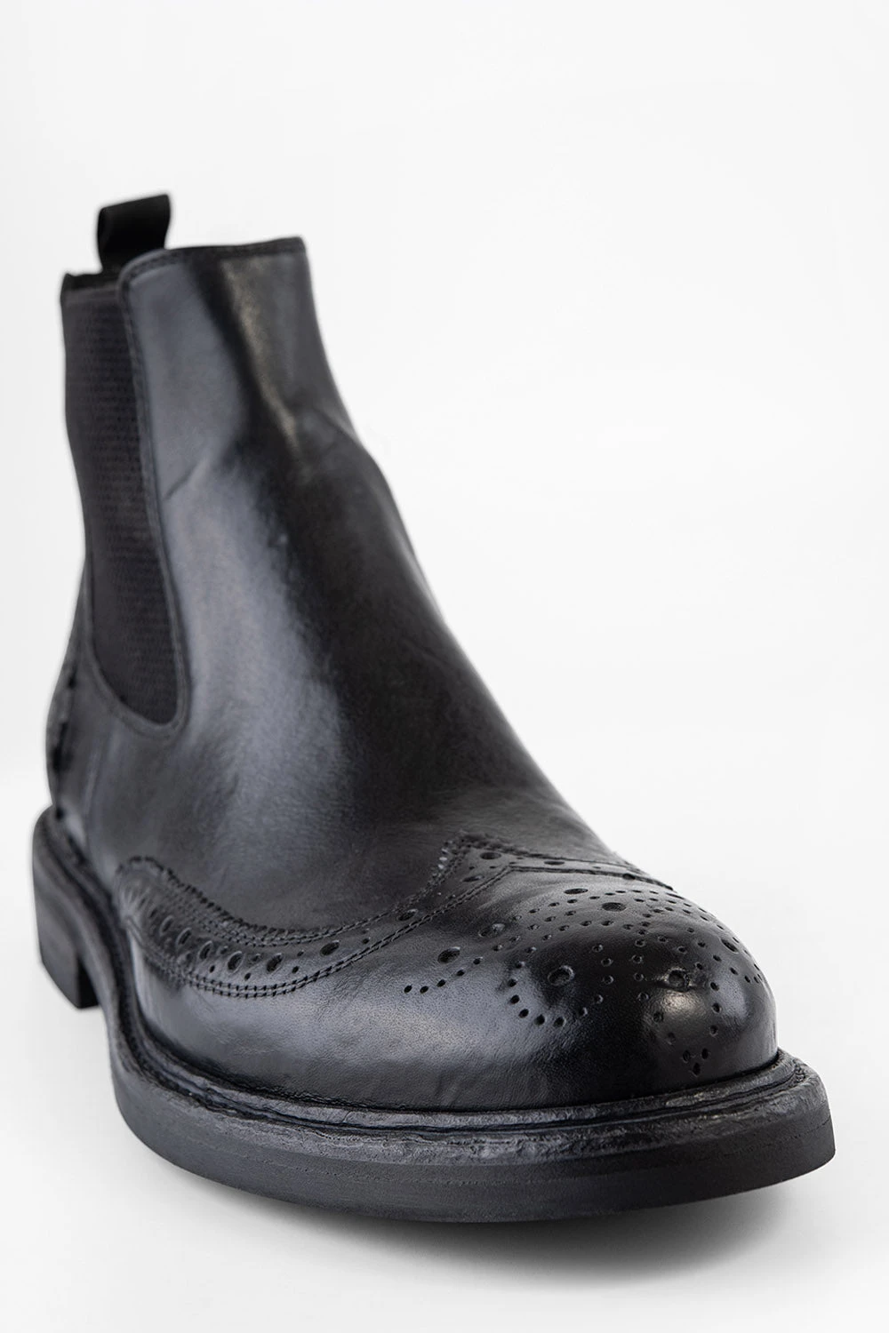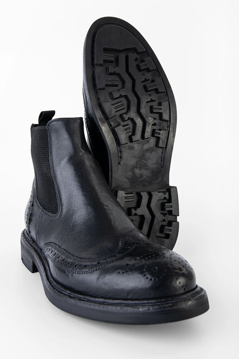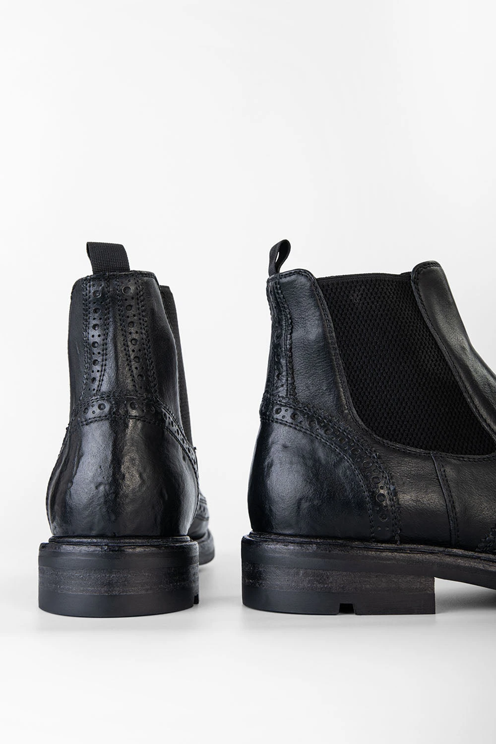 Crafted by our artisans in the heart of Italy, where centuries-old traditions meet modern elegance, this brogue chelsea boot embodies the perfect blend of style, comfort, and durability. The finest, full-grain Italian leather, artfully stonewashed and distressed, meets the classic flair of the brogue detailing, with the delicate perforations and decorative stitching of the upper exuding character and sophistication.