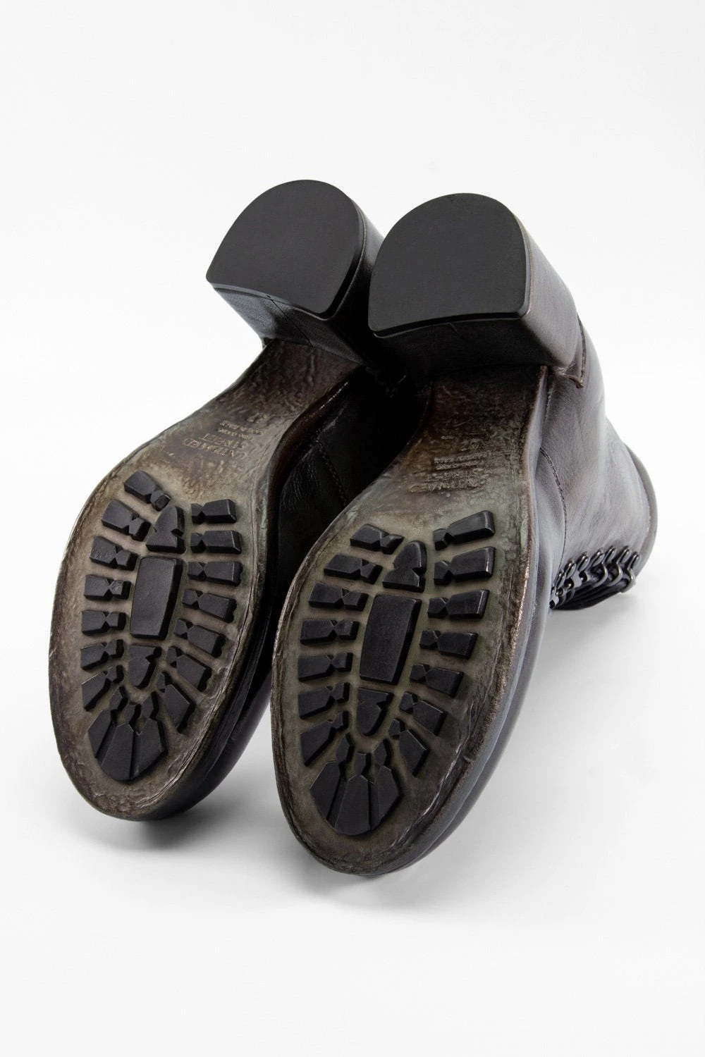 These signature hiking-inspired ankle boots have a powerful and resolute personality. Constructed from top-quality buffalo leather, this style is set on a rubber-injected leather sole complemented by a stylish leather-covered block heel. With metallic hooks and an oversized tongue, the boot’s shaft comes up just above the ankle, allowing for a more bohemian approach to style alongside jeans and dresses.