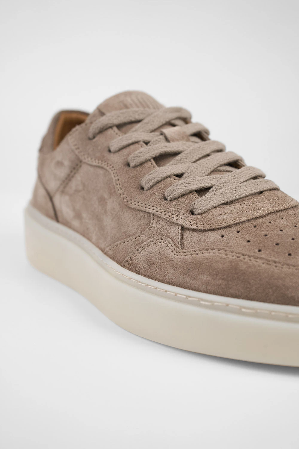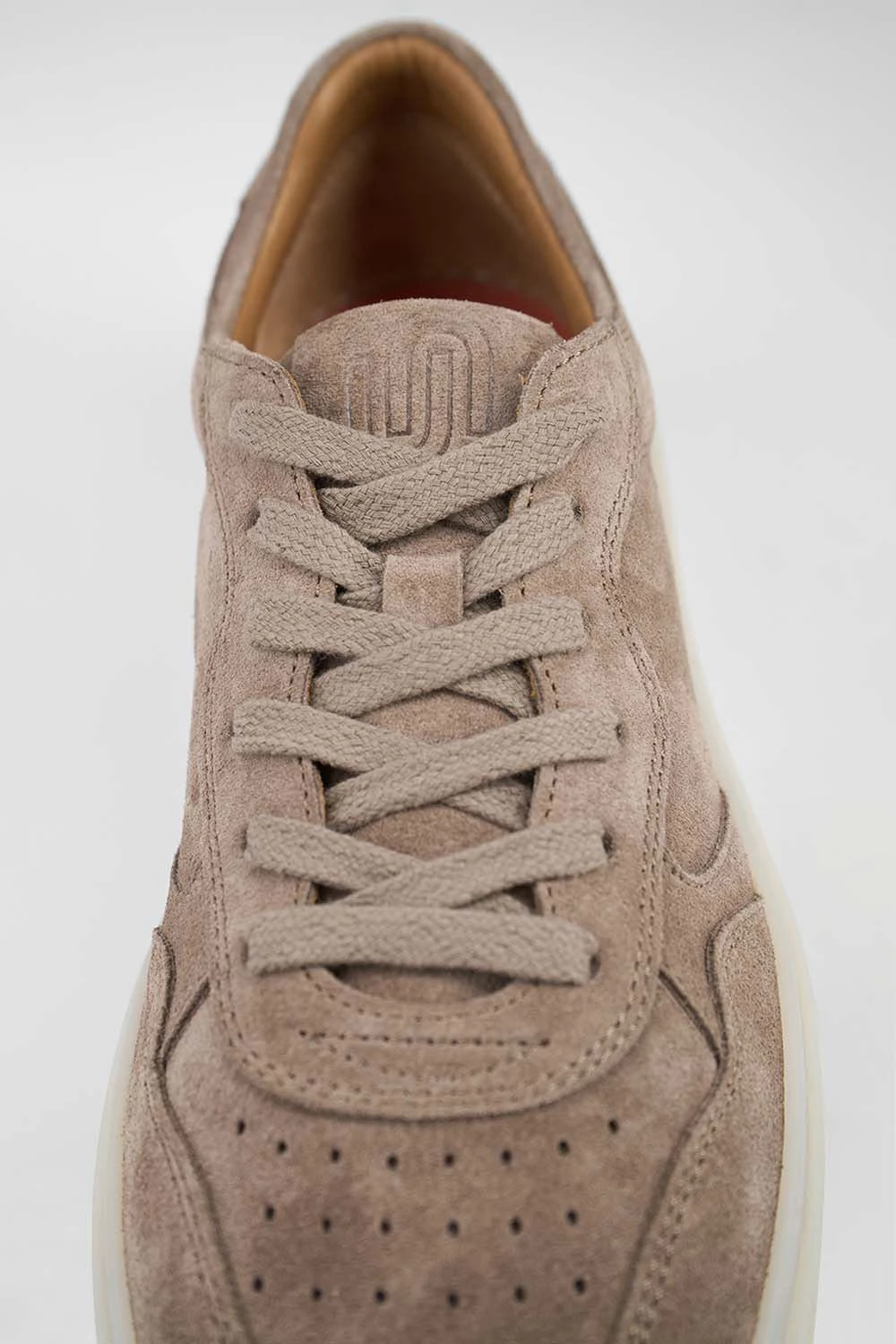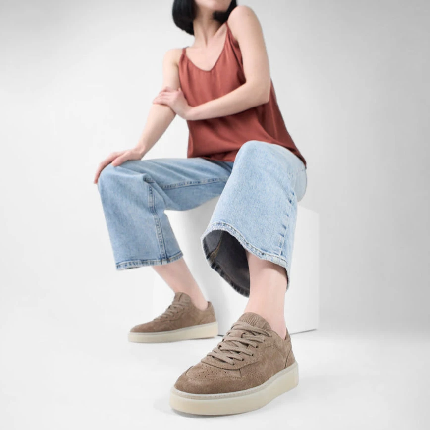 Every detail of this sneaker speaks to the unparalleled craftsmanship and dedication of Italian artisans. The luxurious suede upper, dyed an elegant shade of light greyish brown, offers a soft, supple feel, while the rubber sole ensures durability and comfort for everyday wear.