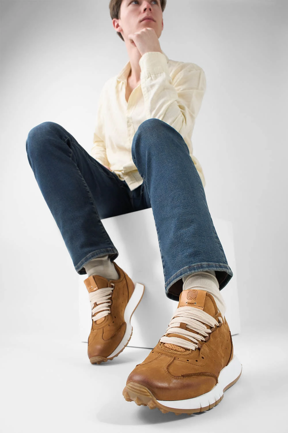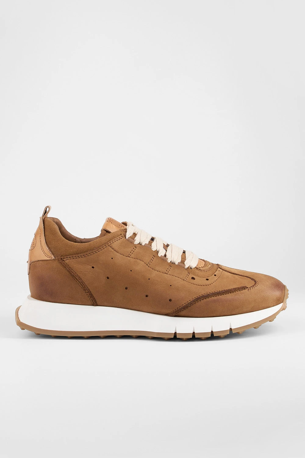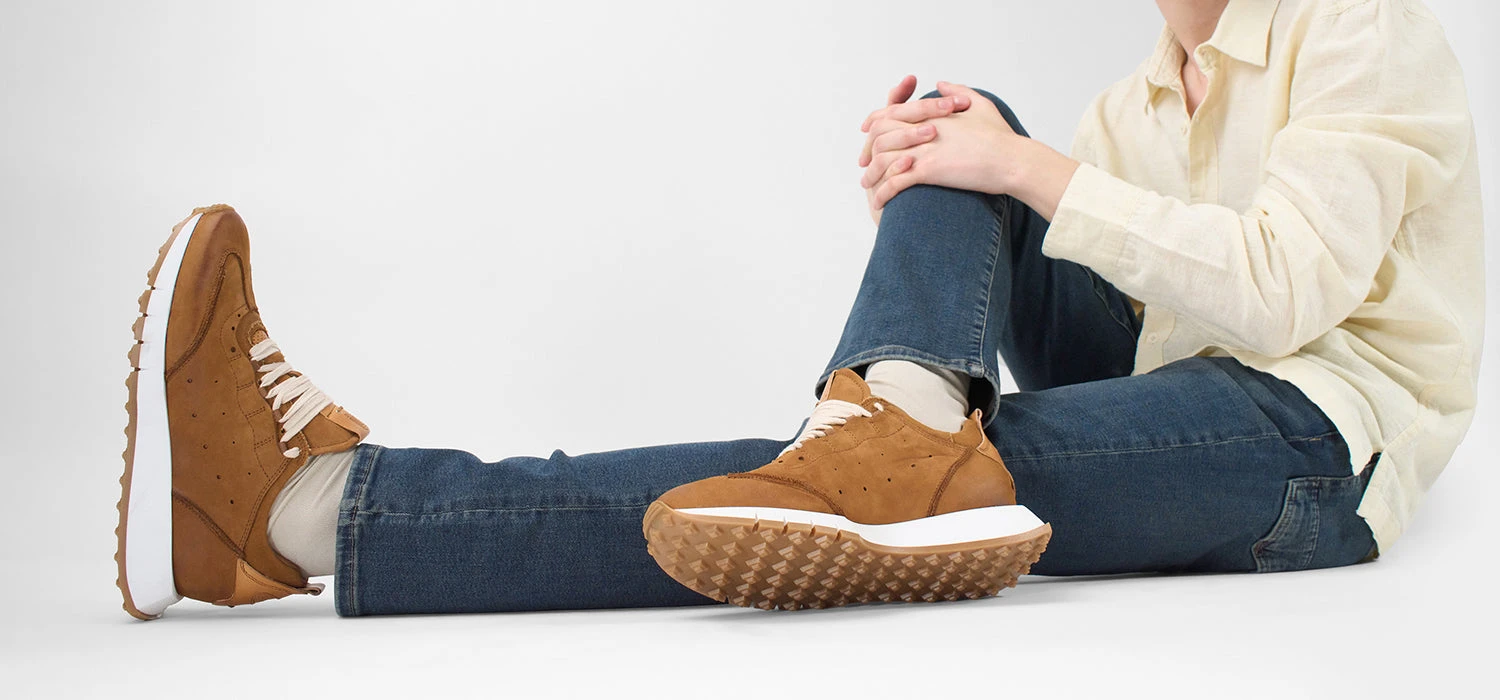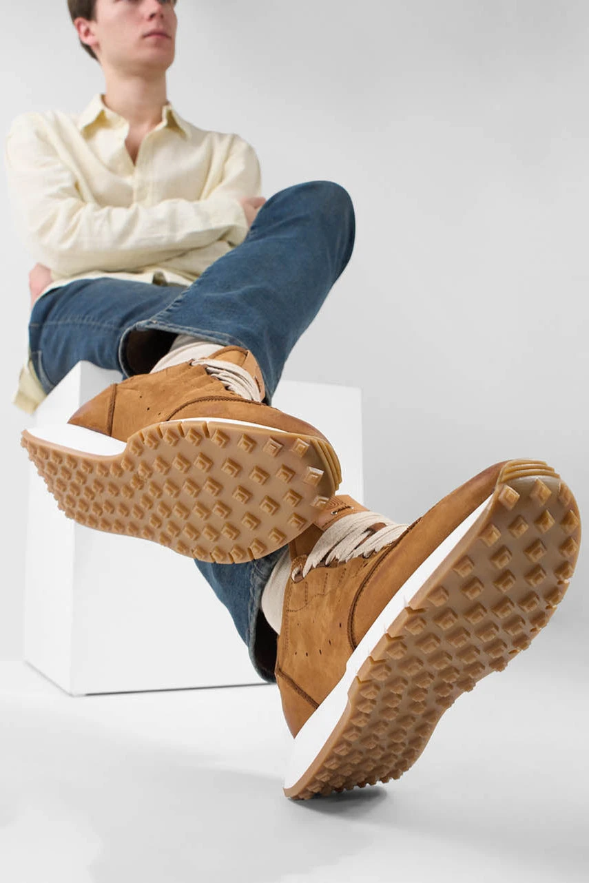 Meticulous craftsmanship and high-quality materials come together to create a runner that is both flattering and comfortable. The PEARCE features a soft and supple nubuck leather upper with its glove-like feel, truly stunning with its beautiful detailing in contrasting colours and materials: leather inserts dyed a warm shade of light brown, a matching padded collar in canvas, light brown laces. A densely cushioned removeable insole, a breathable lining and a lightweight outsole round out this must-have style with the comfort required to keep you dry and light on your feet. Unique aesthetic and superior craftsmanship, a beautiful addition to your shoe rotation that promises to turn heads and elevate all your casual looks.