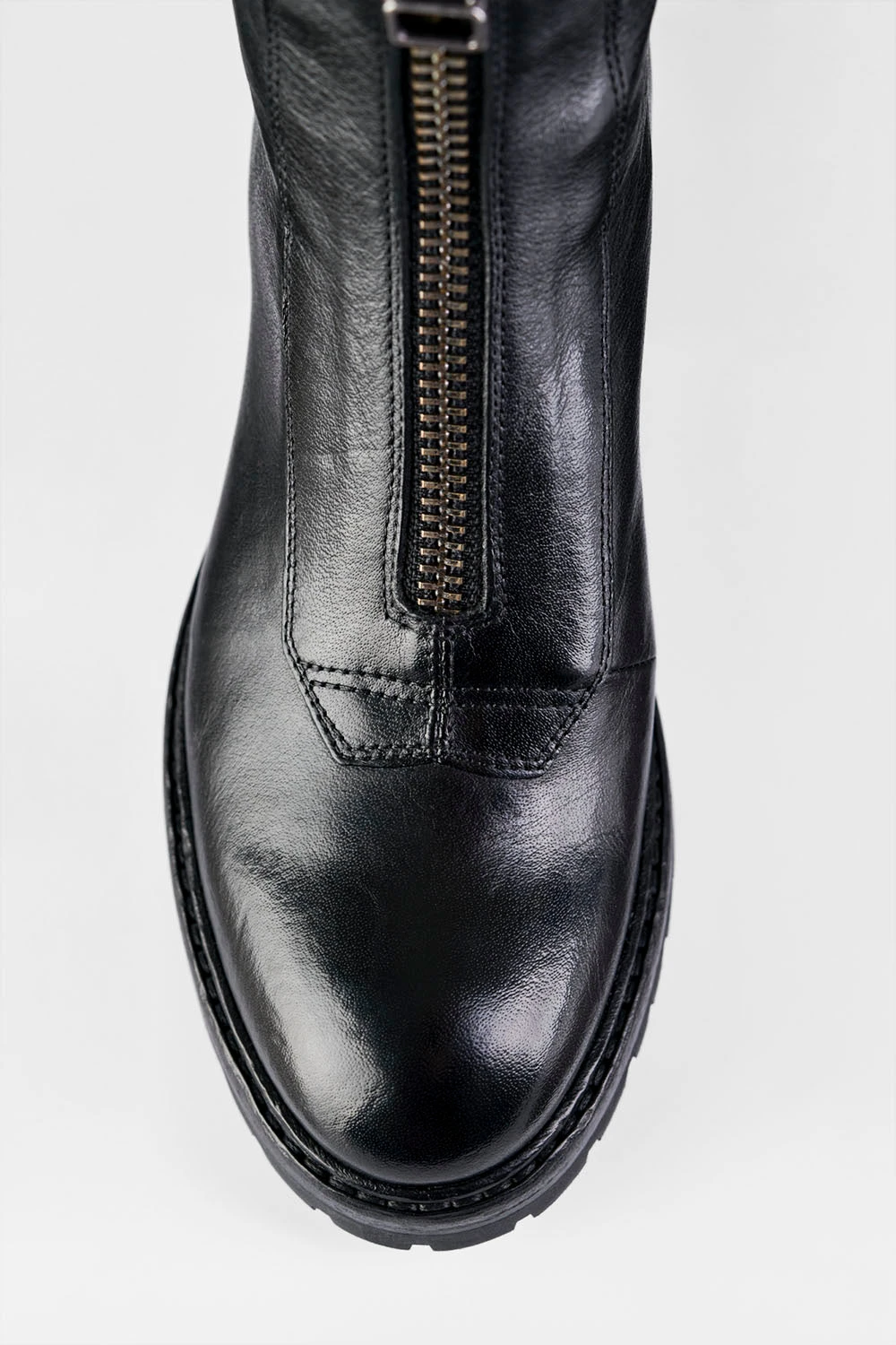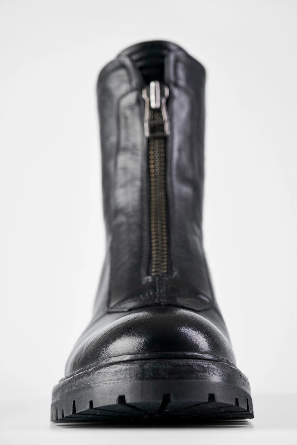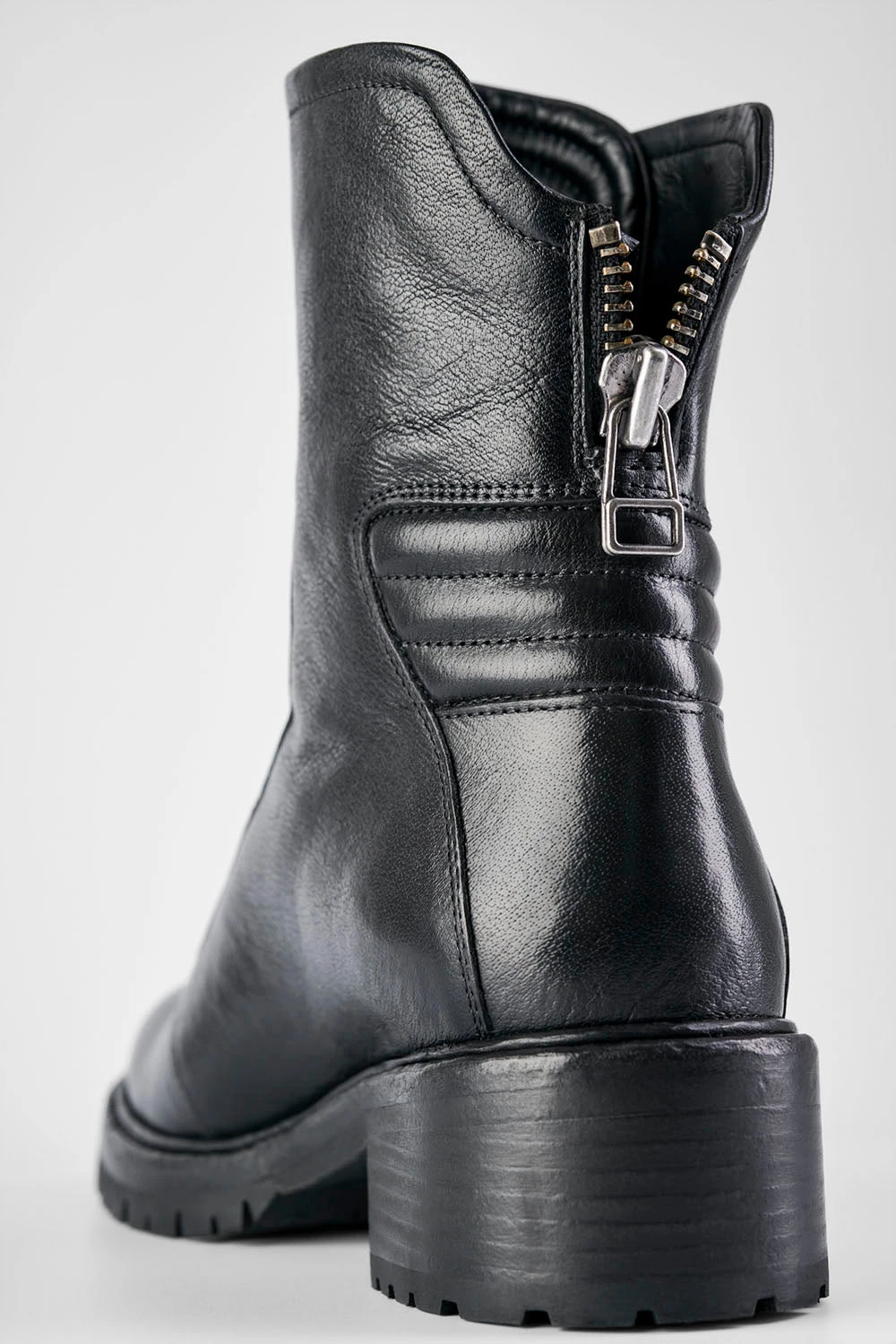 Functional, hard-wearing and chic, these front-zipped boots have a utilitarian design and attention-grabbing aesthetics. The beautiful curves and impressive profile of the upper sit on a low block heel, for endless comfort, and the leather sole is equipped with rugged lug pads for grip and durability. The functional front and back zippers truly shine on these boots, that break away from the traditional restrictions of other biker boots to stand on their own. And they look fantastic when paired with leggings, jeans, and short and long skirts.