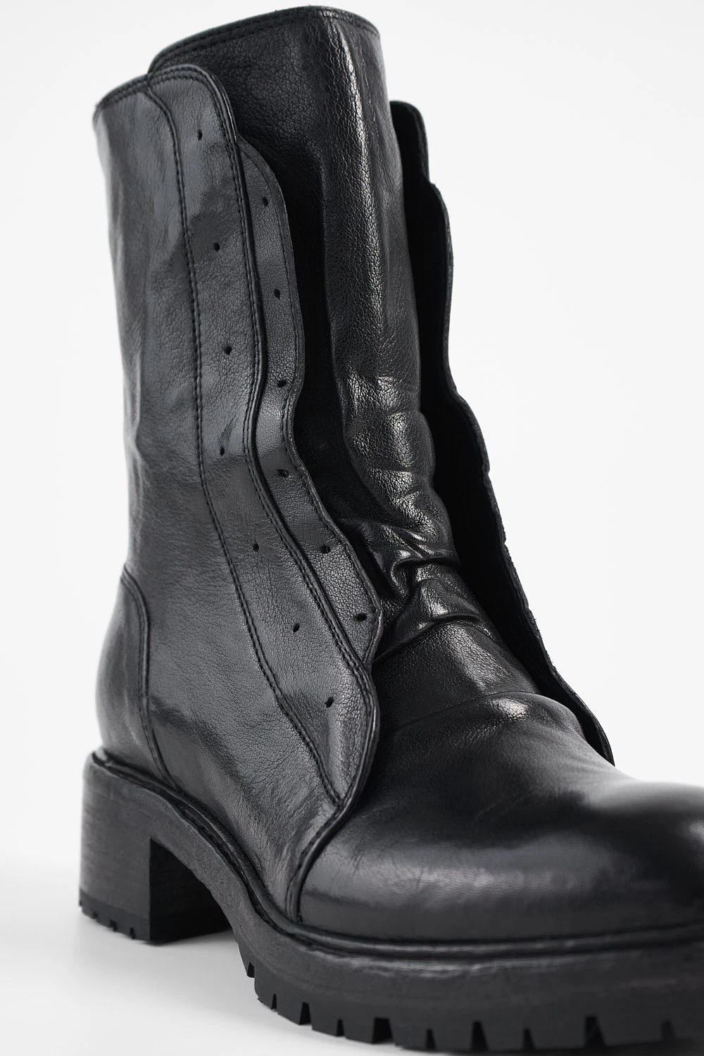 Bold, hard-wearing and chic, you can’t go wrong with this fantastic style. A strong upper in full grain buffalo leather hand-dyed and hand-polished, combined with an imposing leather sole with lug tread insets, to create the bold, expressive stylistic contrast typical of our RADNOR collection. A back zipper ensures these boots will slip on and off with ease. These boots ask to be paired with relaxed leggings and jeans or even a long skirt, and they will look amazing the more you wear them.