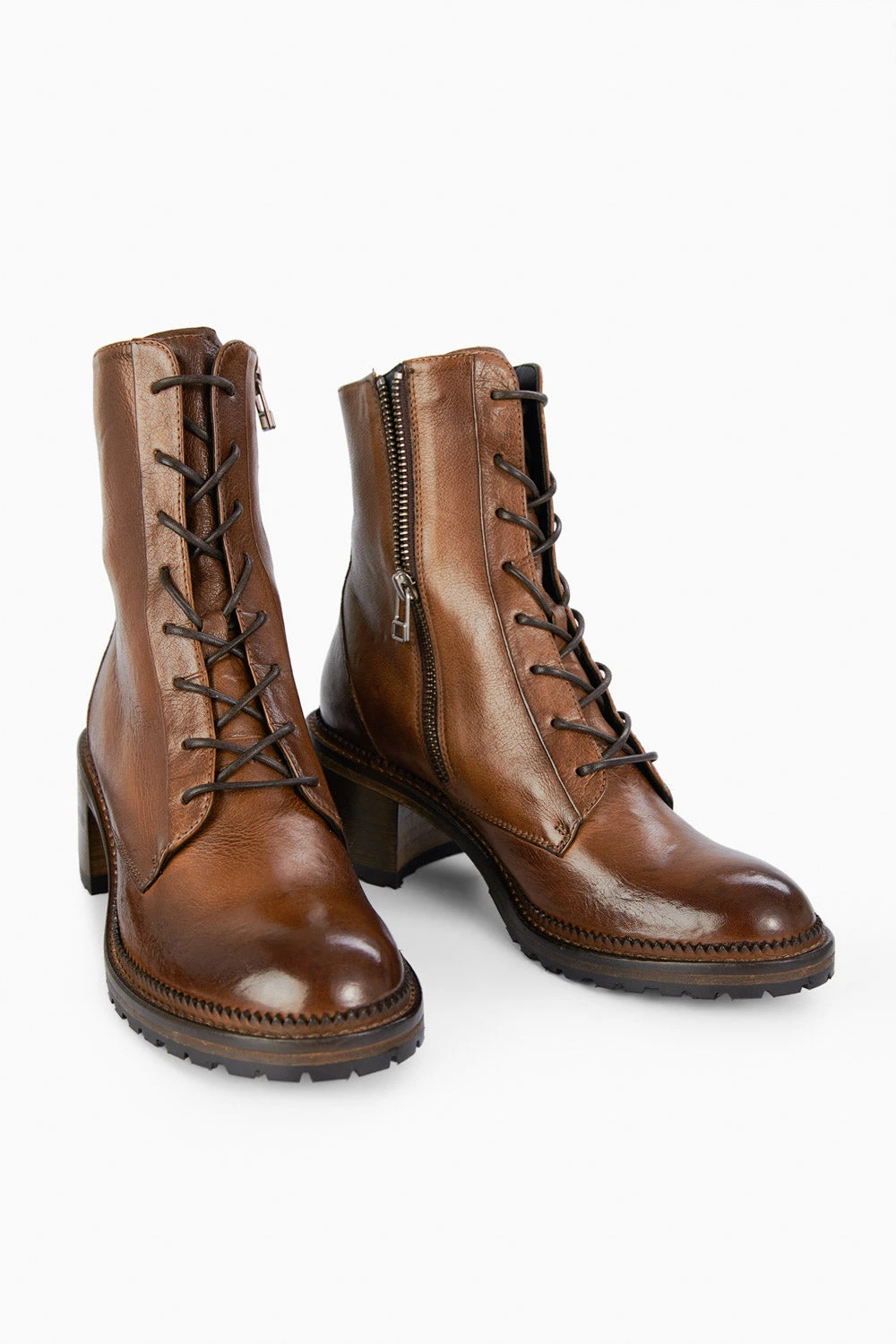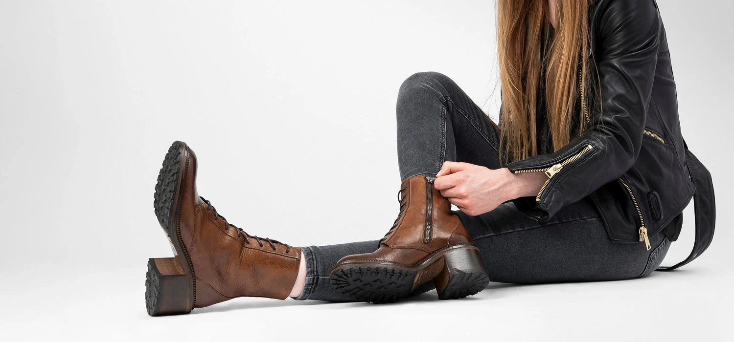 Another bold addition to our most bohemian collection, this boot is Italian craftsmanship at its best. Skillfully handmade in Monte San Giusto from vegetable-tanned calf leather, dip-dyed a warm shade of brown, stonewashed and hand-burnished, to enhance its resolute elegance. Equipped with a strong block heel and a durable rubber sole for added comfort and grip, this style has the character and attitude of our REGENT collection; a perfect blend of tradition and modernity that will look great with your entire wardrobe.