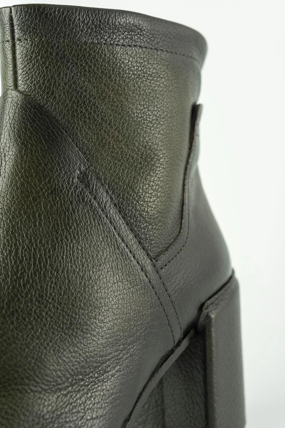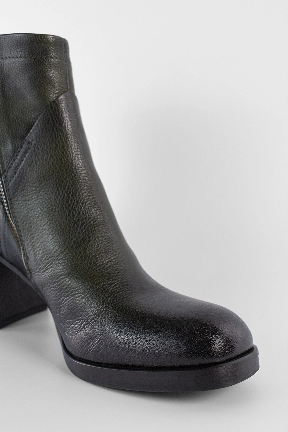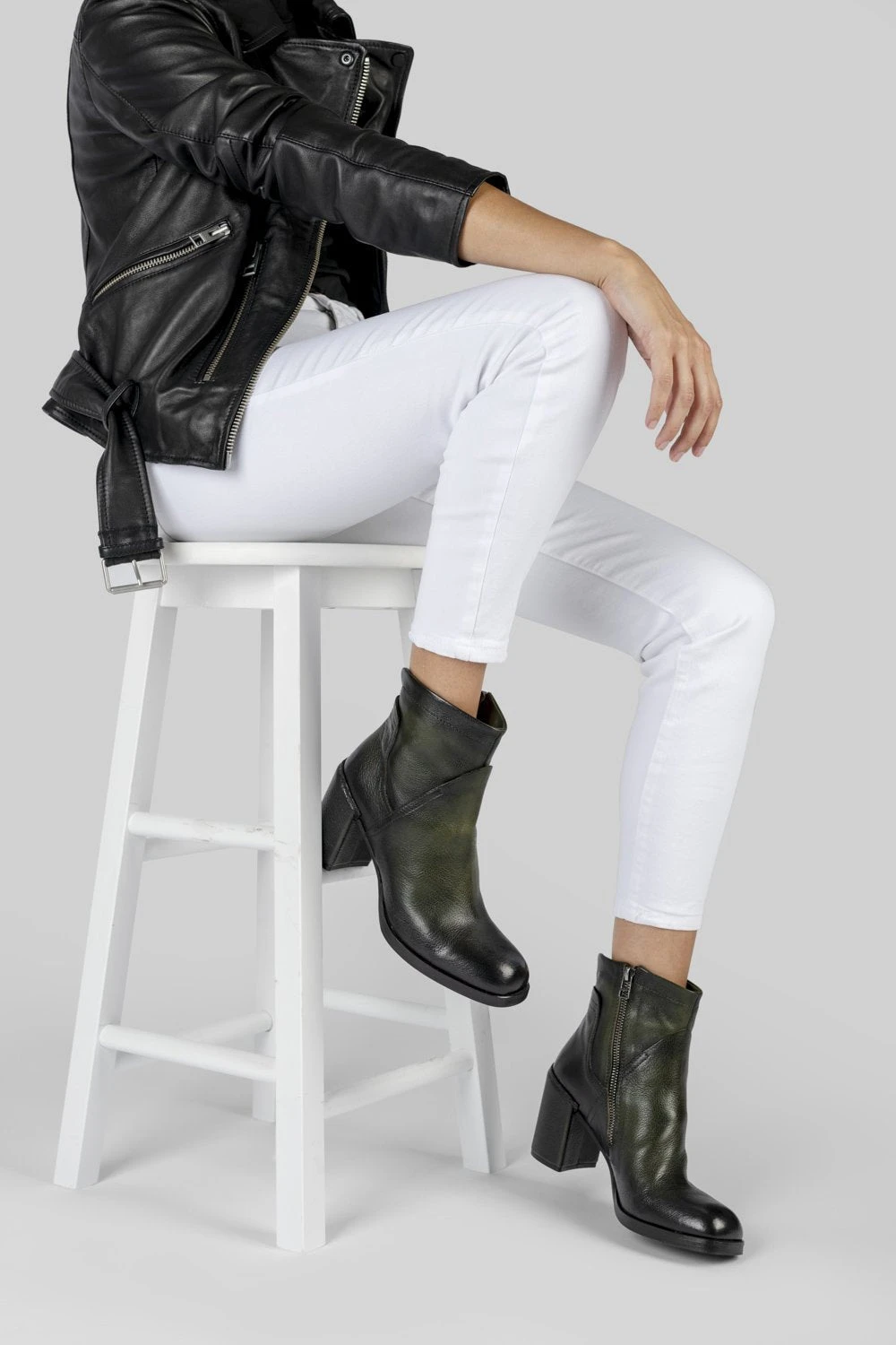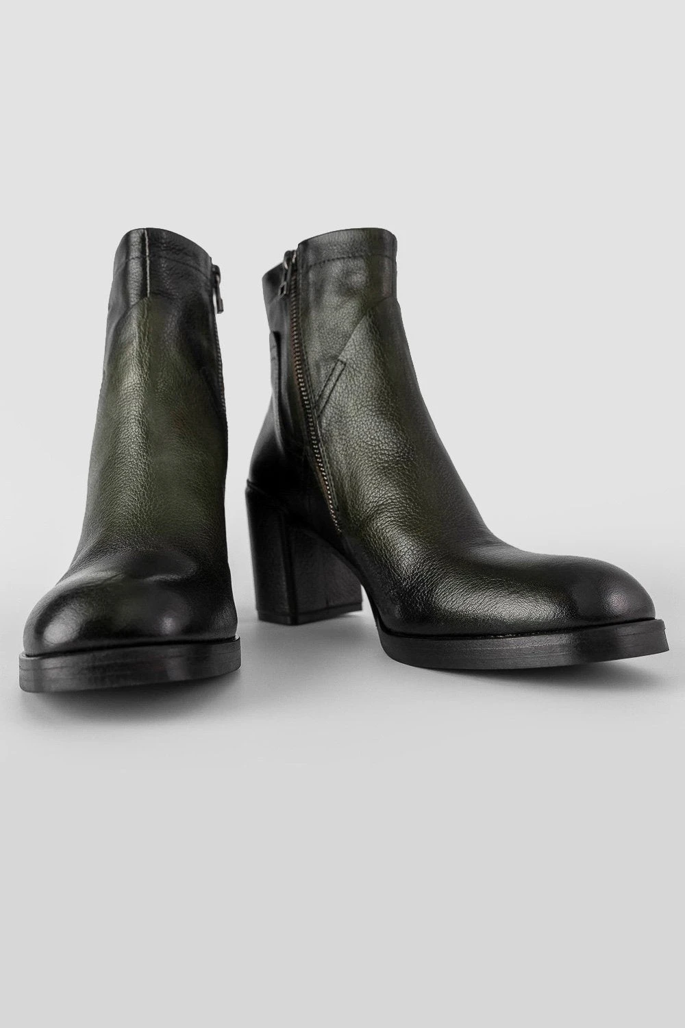 Designed to impress, these clean-cut yet modern boots feature plenty of texture and attitude. Cut from luxurious buffalo leather, vegetable-tanned and hand-dyed in a beautiful shade of dark green, this flattering and versatile bootie is given a sartorial appearance by its leather-covered block heel and the sophisticated stitching on the sides. Finished with a simple zip fastening on the inset of the ankle – to let you glide right in – this style exudes personality and character, a perfect complement to any smart outfit.