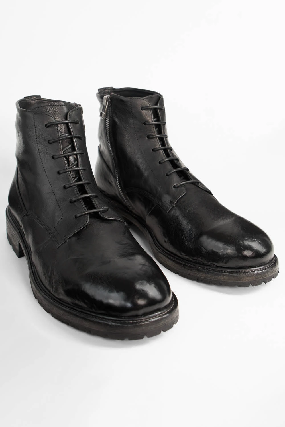 Style meets exceptional quality and unmatched comfort in these lace-up boots that command attention and promise not to go unnoticed. Handcrafted in Italy from the best quality calf nubuck leather, these boots stand out with their rich finish and meticulously folded edges, a testament to the unparalleled craftsmanship of our artisans in Montegranaro. Designed with a convenient internal zip, these boots offer the perfect blend of traditional lace-up style and modern ease of wear, without compromising the classic look. A sturdy Blake stitched leather sole, reinforced with rubber pads for greater grip and insulation, completes this style with additional character and a distinctive vibe. Investing in such footwear is not just about owning a pair of boots; it’s about embracing a piece of art that embodies tradition, luxury, and sophistication.