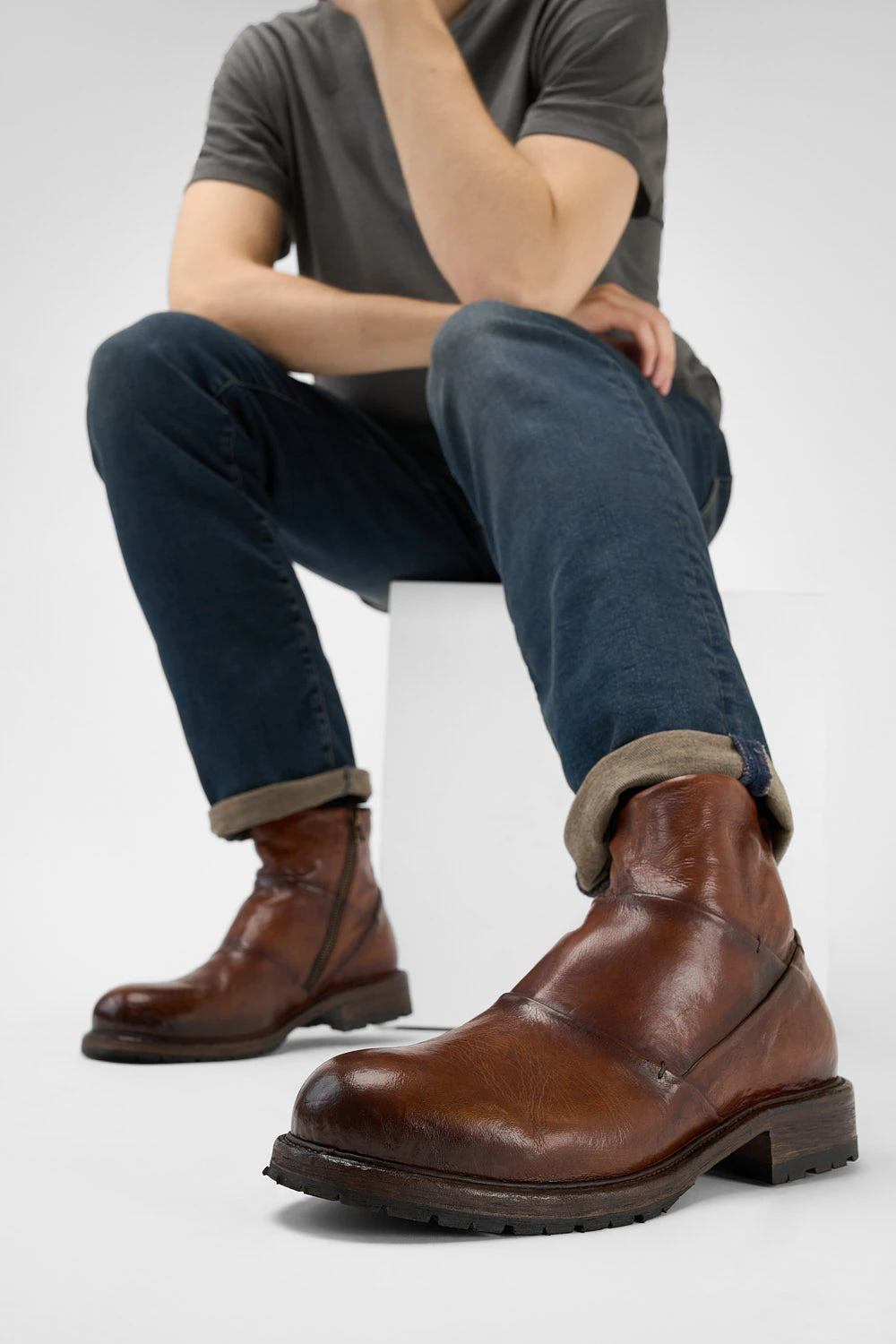 Be the first to review “ROWLEY Cognac Folded Laceless Boots.” Cancel reply