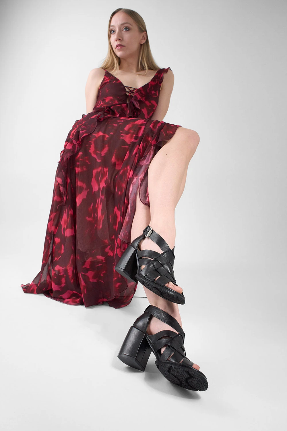 With a cushioned footbed to ensure the cosiest fit, and a leather sole featuring a RUBREX lug and a block heel, every stride provides stability. Every step becomes a moment of pure comfort. A stylish mid-heel sandal to go everywhere and with everything, a must-have addition to your summery footwear collection.