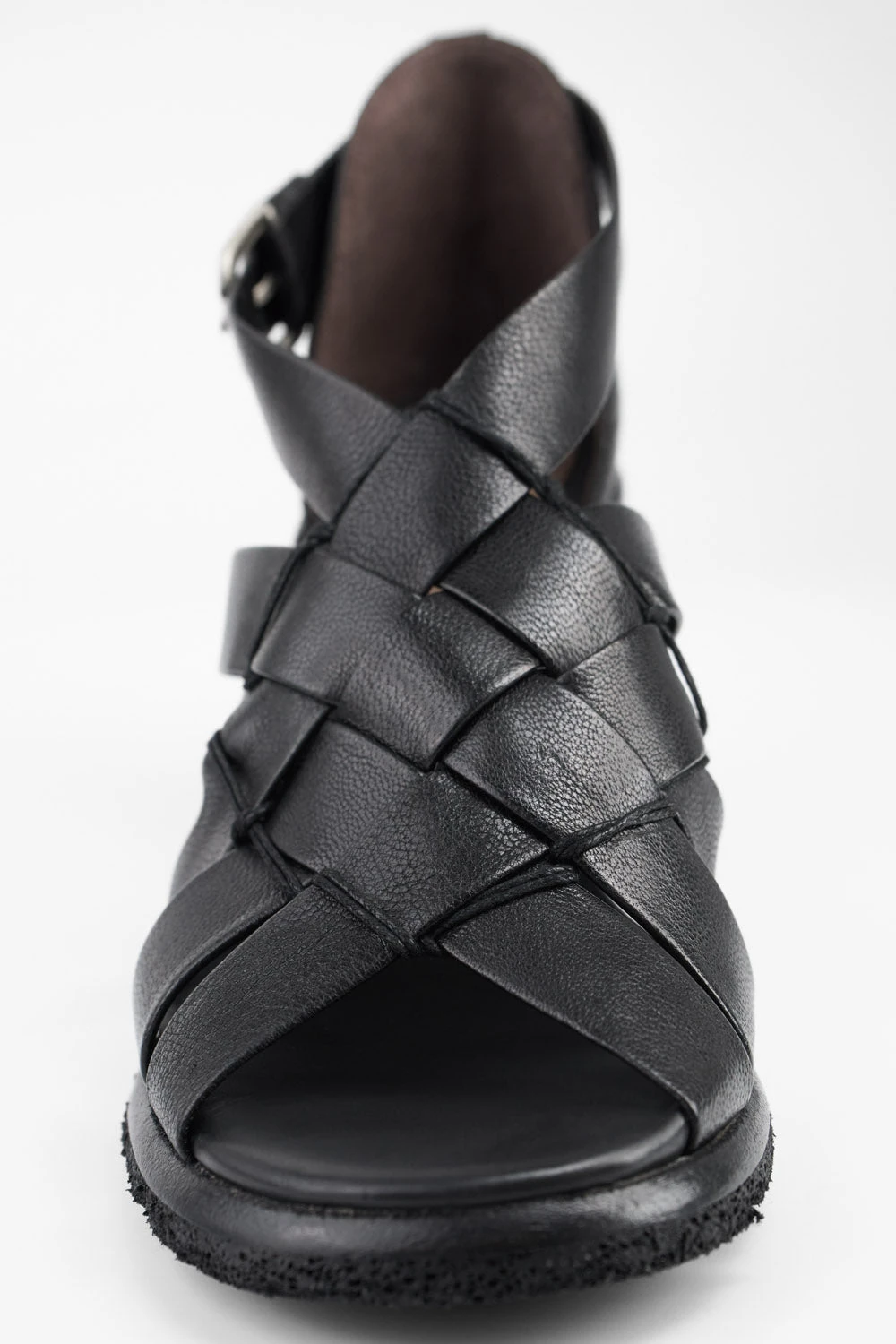 A classic city sandal with a urban twist, and the unmatched craftsmanship of our artisans in Montegranaro. Crafted from smooth goatskin, these women’s sandals feature a crisscross toe design with burnished and buffed edges for a clean finish, and an adjustable buckled strap that lovingly embraces your arch and ankle.