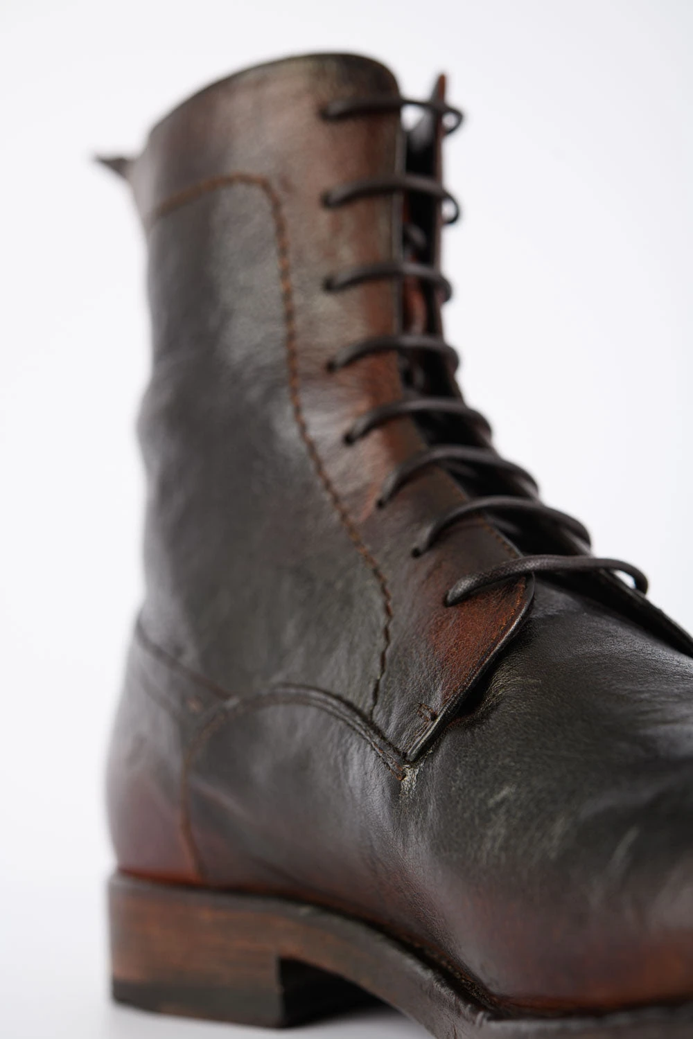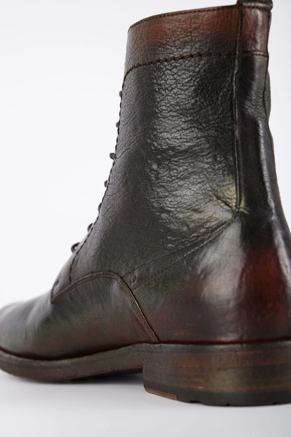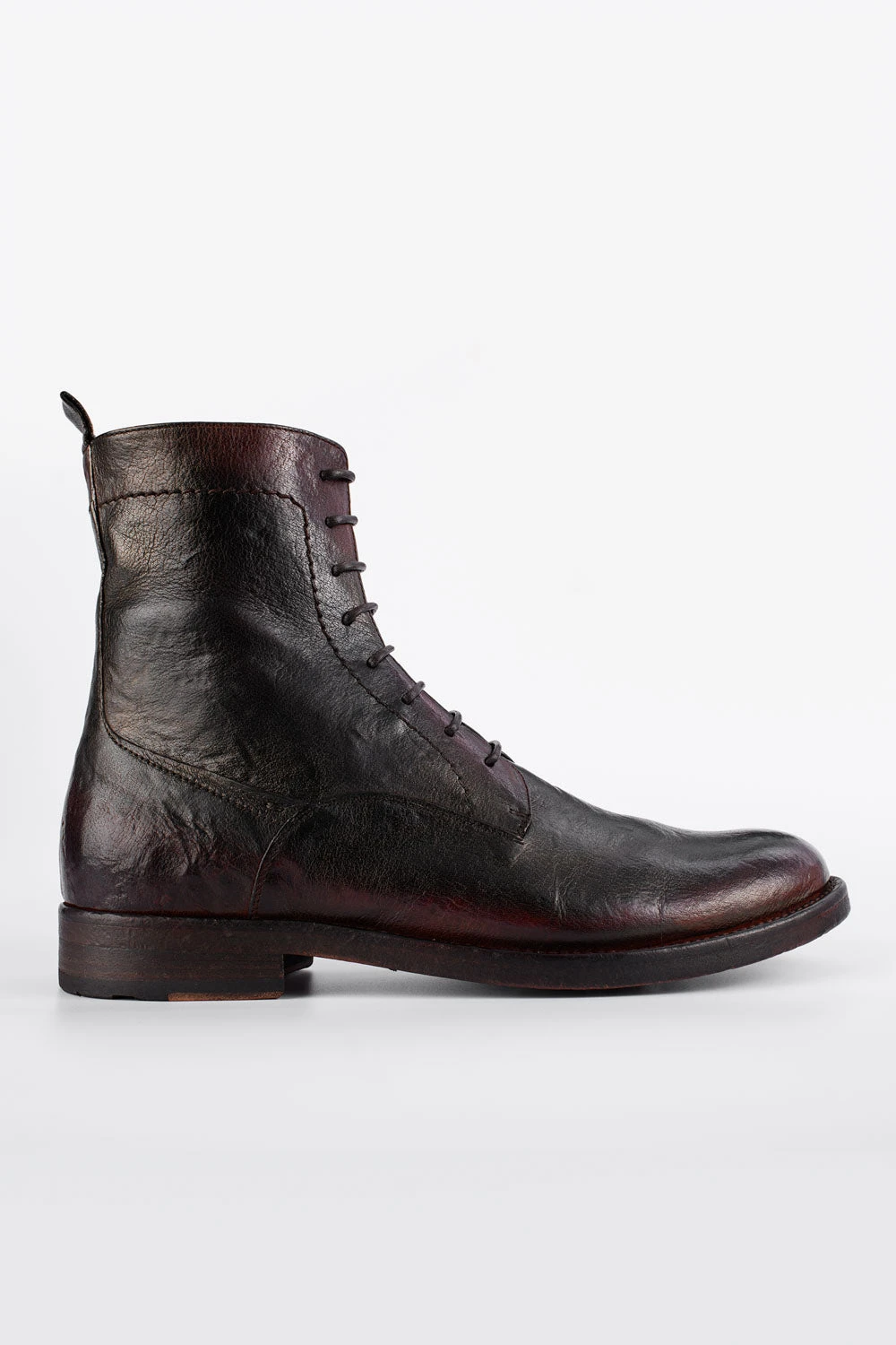 This exquisite handmade boot is the contemporary incarnation of artisanal craftsmanship. The finest full-grain buffalo skin is hand-dyed, stonewashed and vigorously brushed to bring out a hint of bright, reddish brown. The upper is Blake-stitched onto a hand-built buffalo leather outsole. Ideal for the gentleman traveller and the city dweller, this boot adds a distinctive rock&roll touch to any attire.