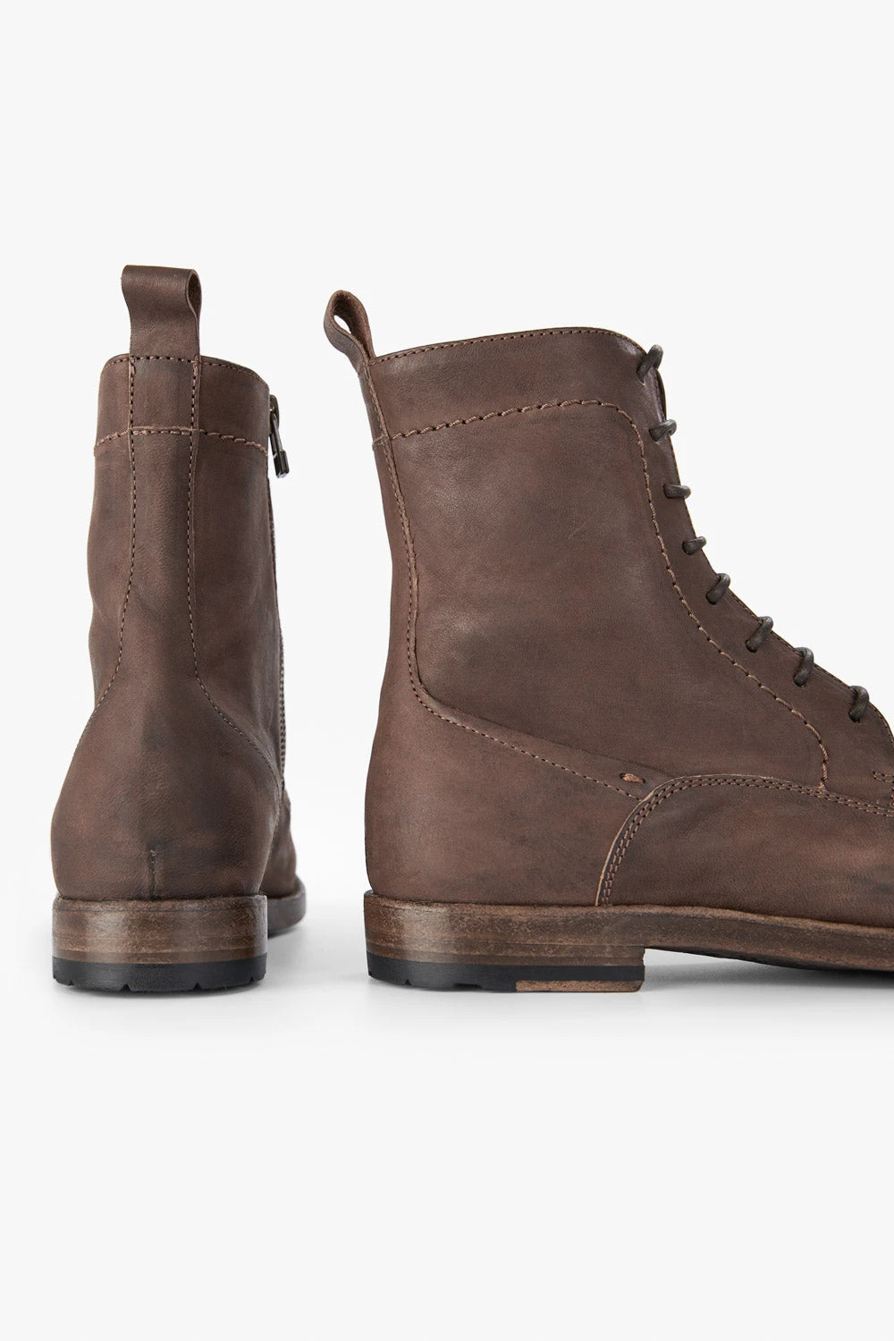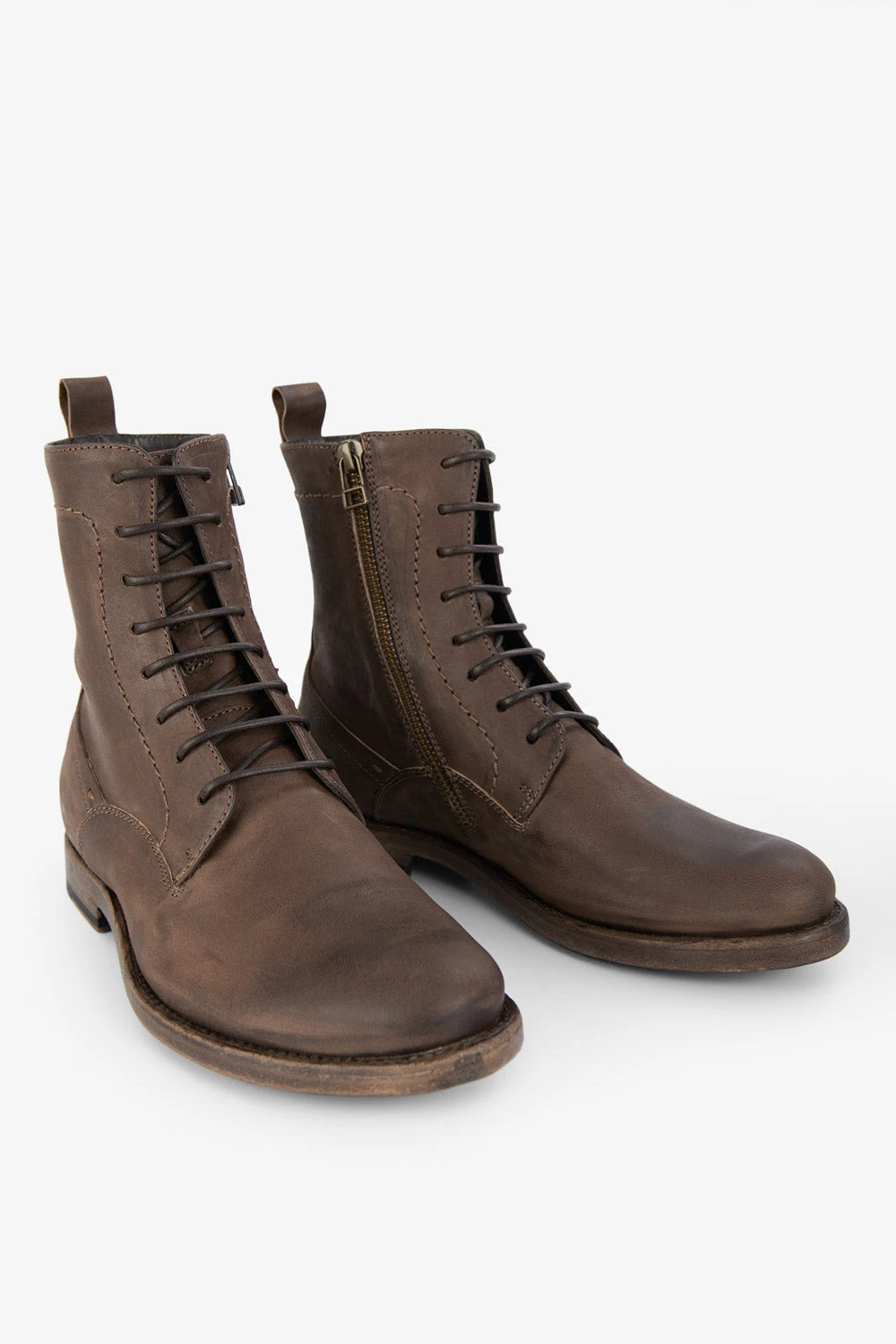 These exquisite handmade ankle boots are the contemporary incarnation of artisanal craftsmanship. The finest full-grain horse leather is dyed a beautiful shade of mild brown; the upper is brushed and polished by hand and Blake-stitched onto a hand-built, rubber-injected buffalo leather sole. Effortlessly sleek and trend-aware, these boots look fantastic when paired with corduroy and jeans: the perfect boots to take you everywhere.
