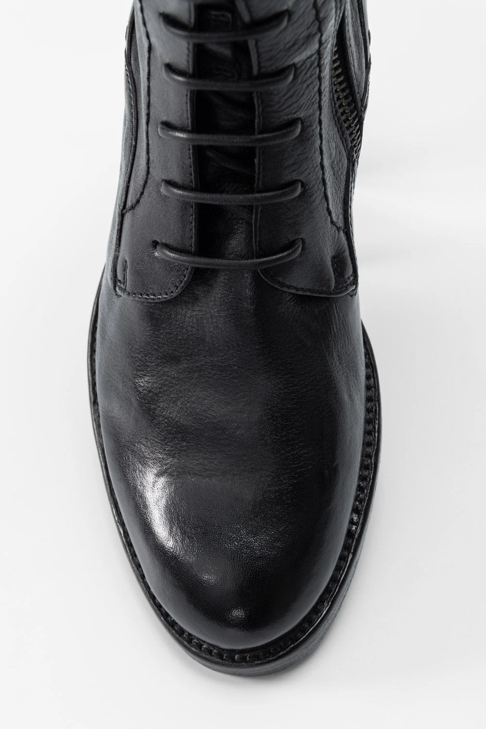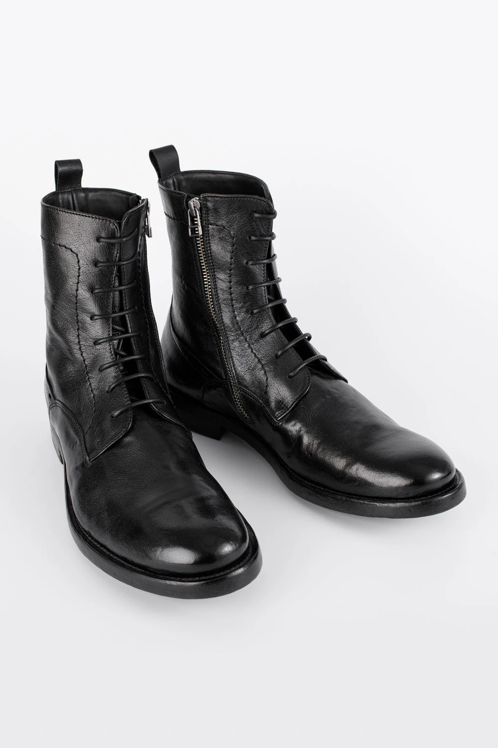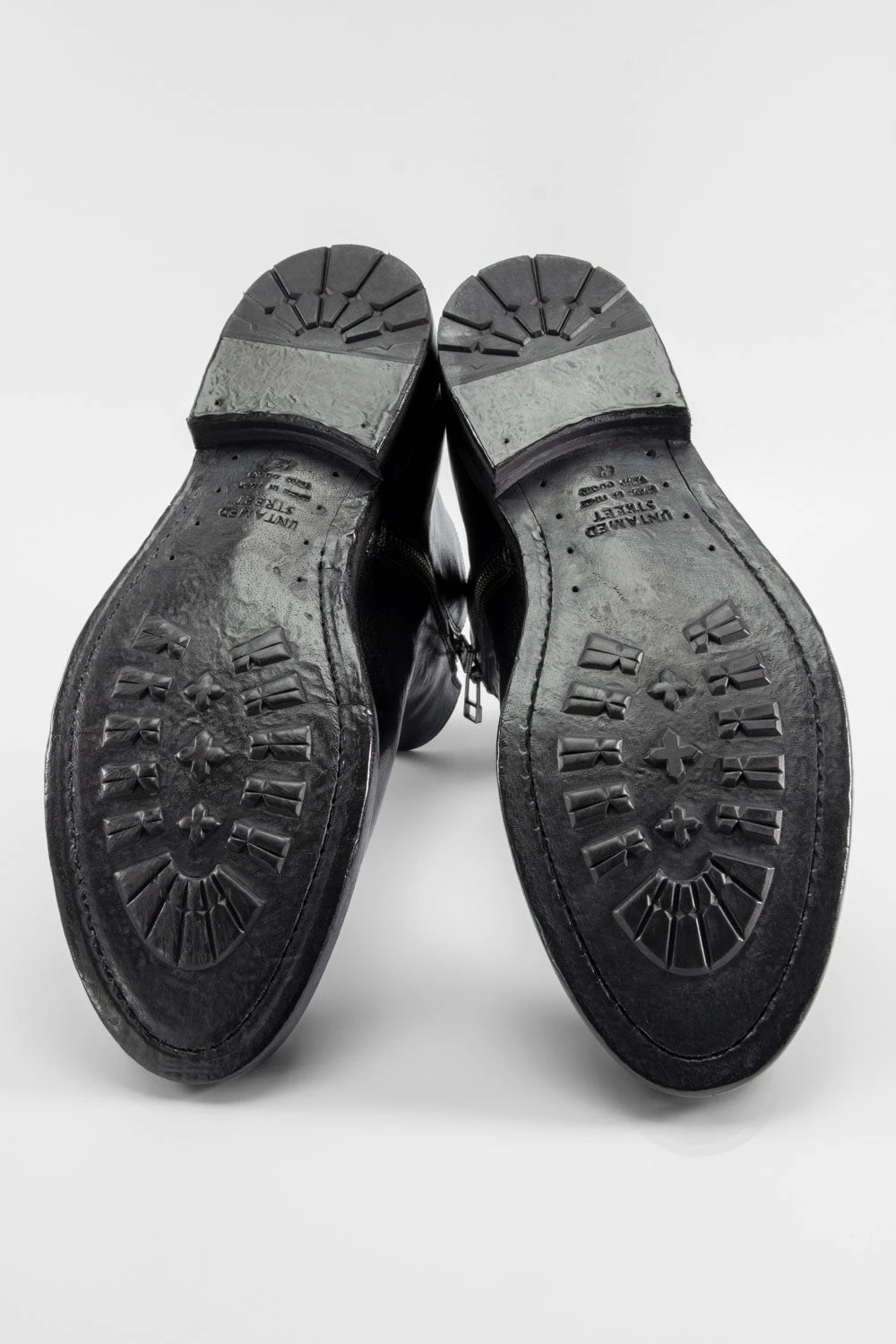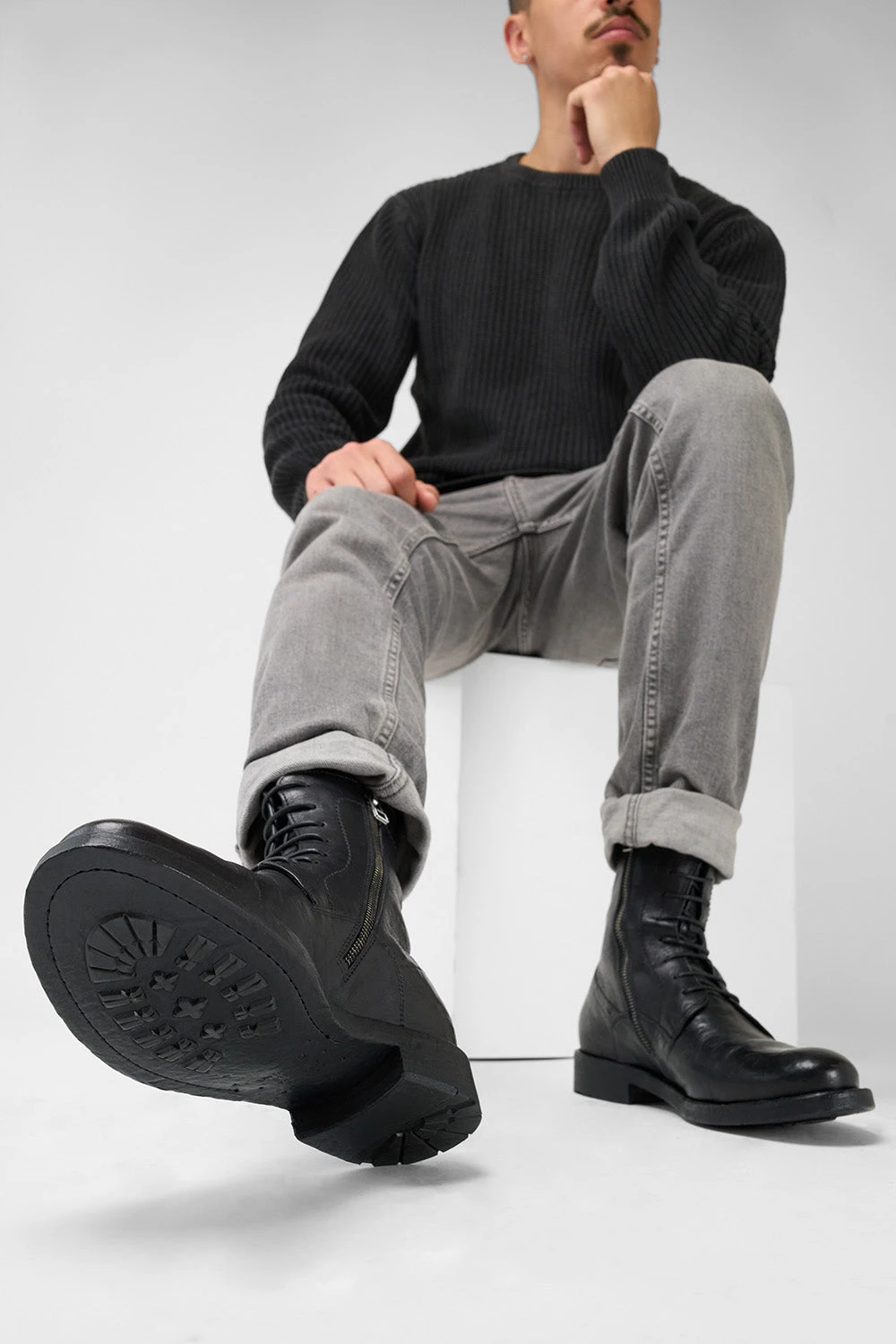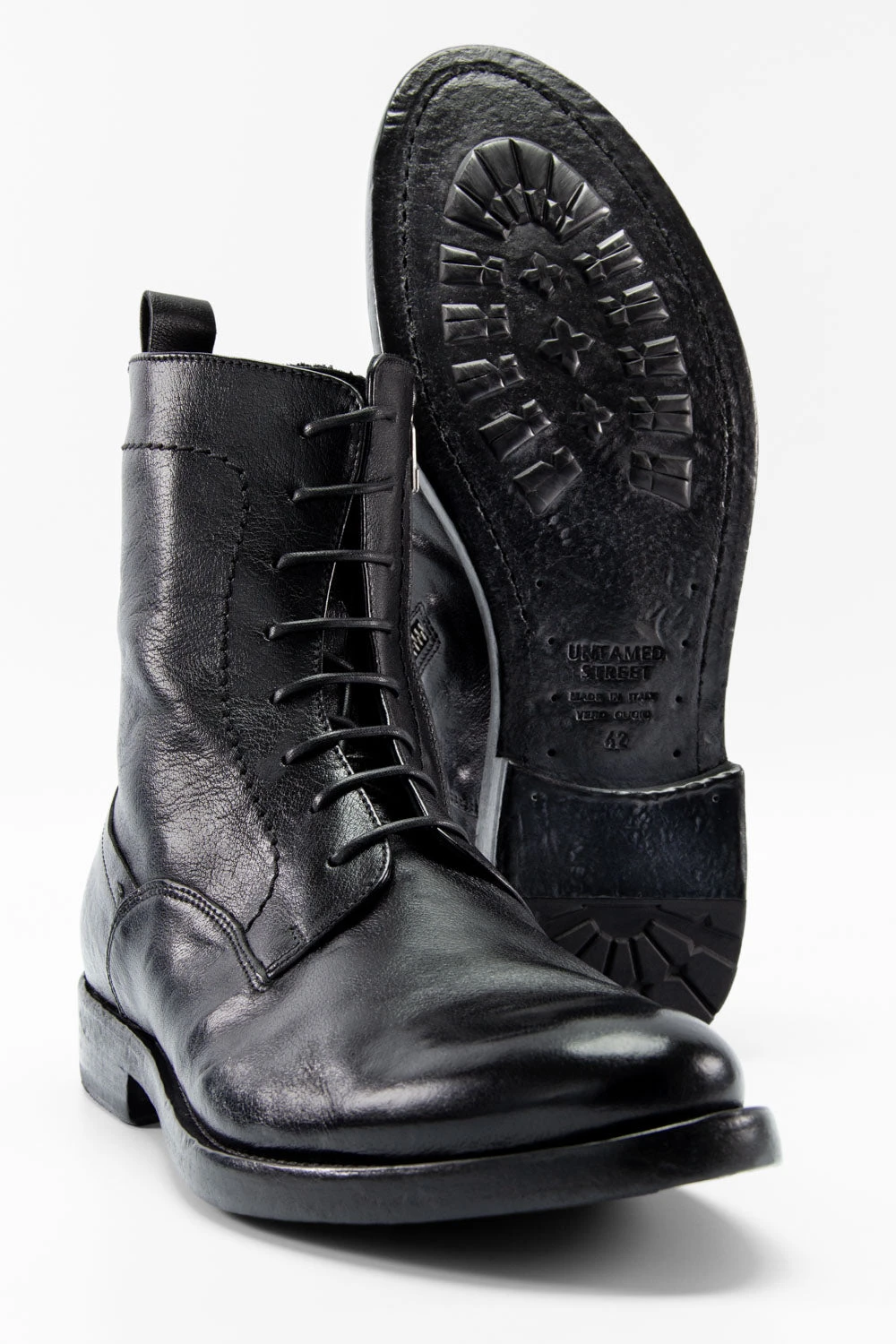 This exquisite handmade boot is the contemporary incarnation of artisanal craftsmanship. The finest full-grain buffalo skin is hand-dyed, stonewashed and vigorously brushed. The upper is Blake-stitched onto a hand-built buffalo leather outsole. Ideal for the gentleman traveller and the city dweller, this boot adds a distinctive rock & roll touch to any attire.