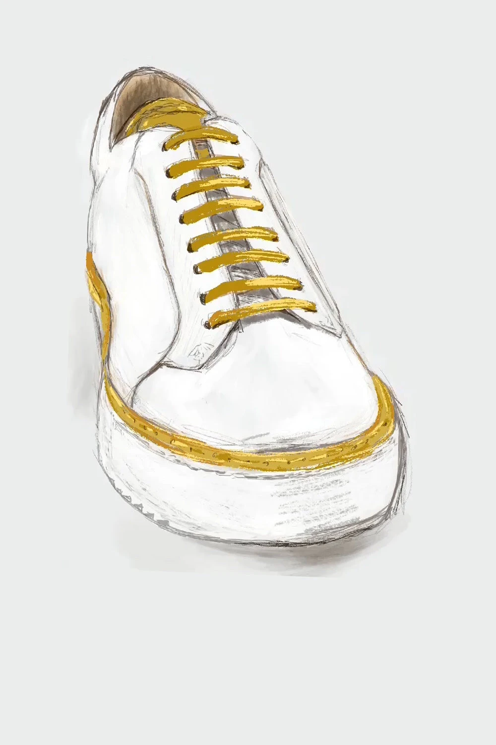 Simplicity defines elegance in this detail-oriented white sneaker, crafted around elegance and urban luxury. Rethinking the traditional court shoe, this iconic and timeless model presents a sleek and understated silhouette, masterfully handcrafted folded edges, an eye-catching embossed heel and a leather welted rubber sole, a true rarity. Dress it up with a blazer or dress it down with jeans, this handmade sneaker is ready for anything.