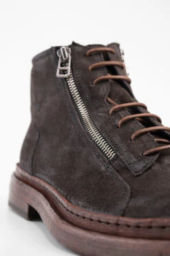 A luxurious sneaker featuring patina shades of dark green and a wide-indented tread pattern outsole from Margom. A lace-up style finishes this sleek silhouette alongside an eye-catching tonal tab with an embossed logo. With its clean lines and minimalist style, this is an elevated sneaker which can be paired with both formal and casual pieces.