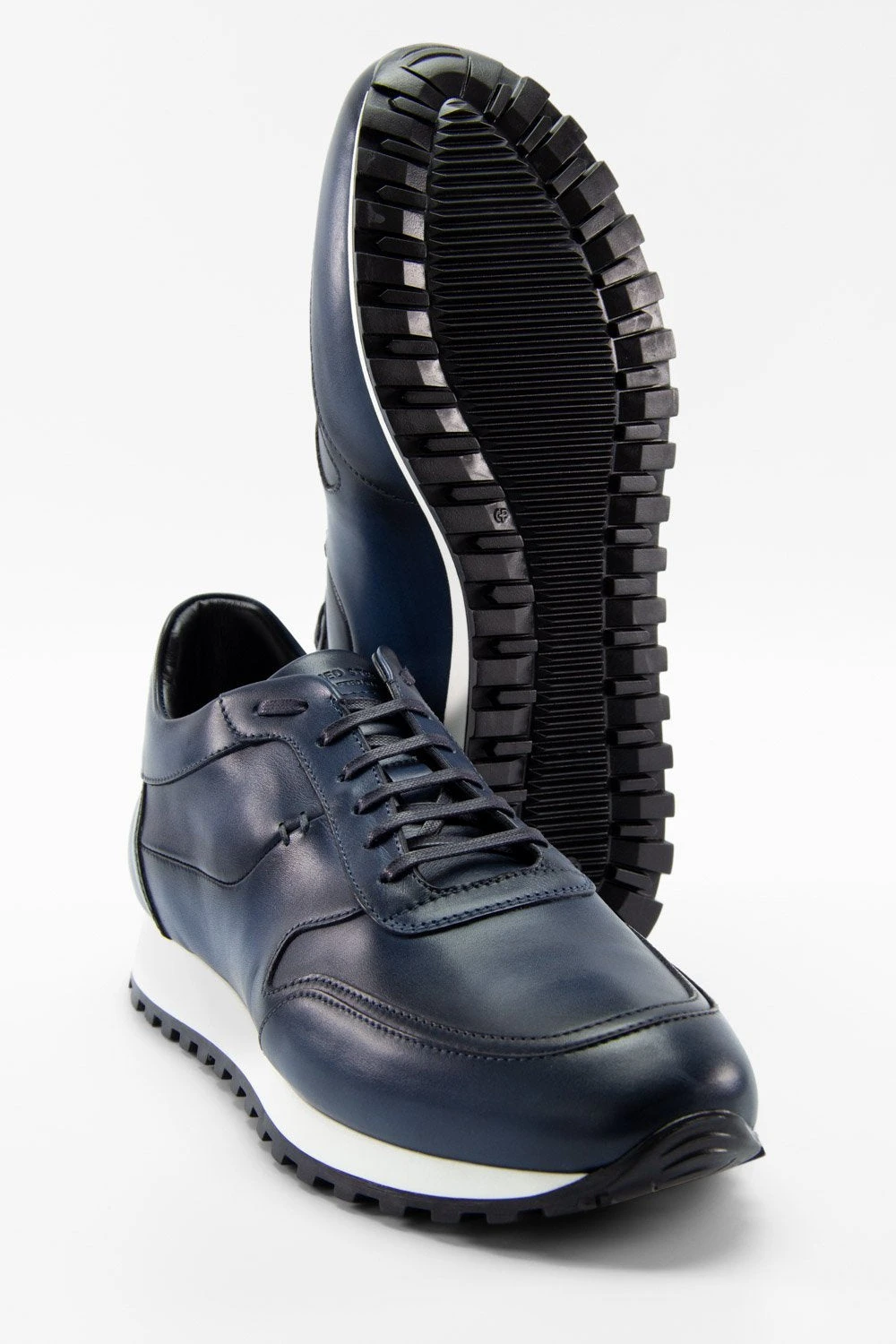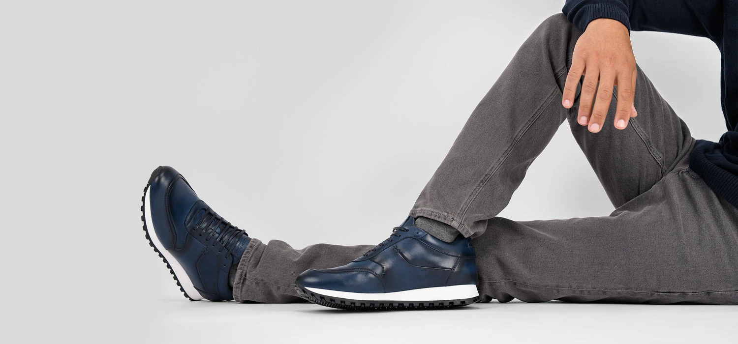 Part luxury footwear, part performance runner, this is an elevated runner with the attitude of a dress shoe. Smart and functional, this style features patina shades of blue, a memorable wide-indented tread pattern outsole for an amazing grip, and an eye-catching tonal tab with an embossed logo. Designed to meet the demands of always-on urban lifestyles, for a man who values quality and superior craftsmanship.