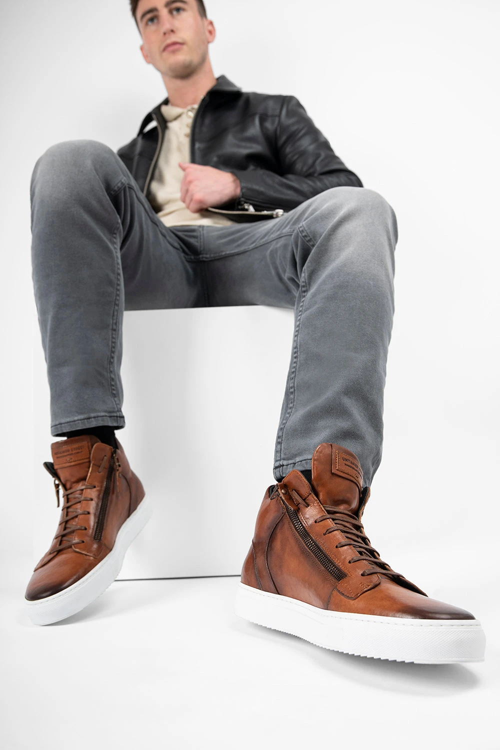 Be the first to review “SOHO ROGUE Cognac Distressed High Sneakers.” Cancel reply