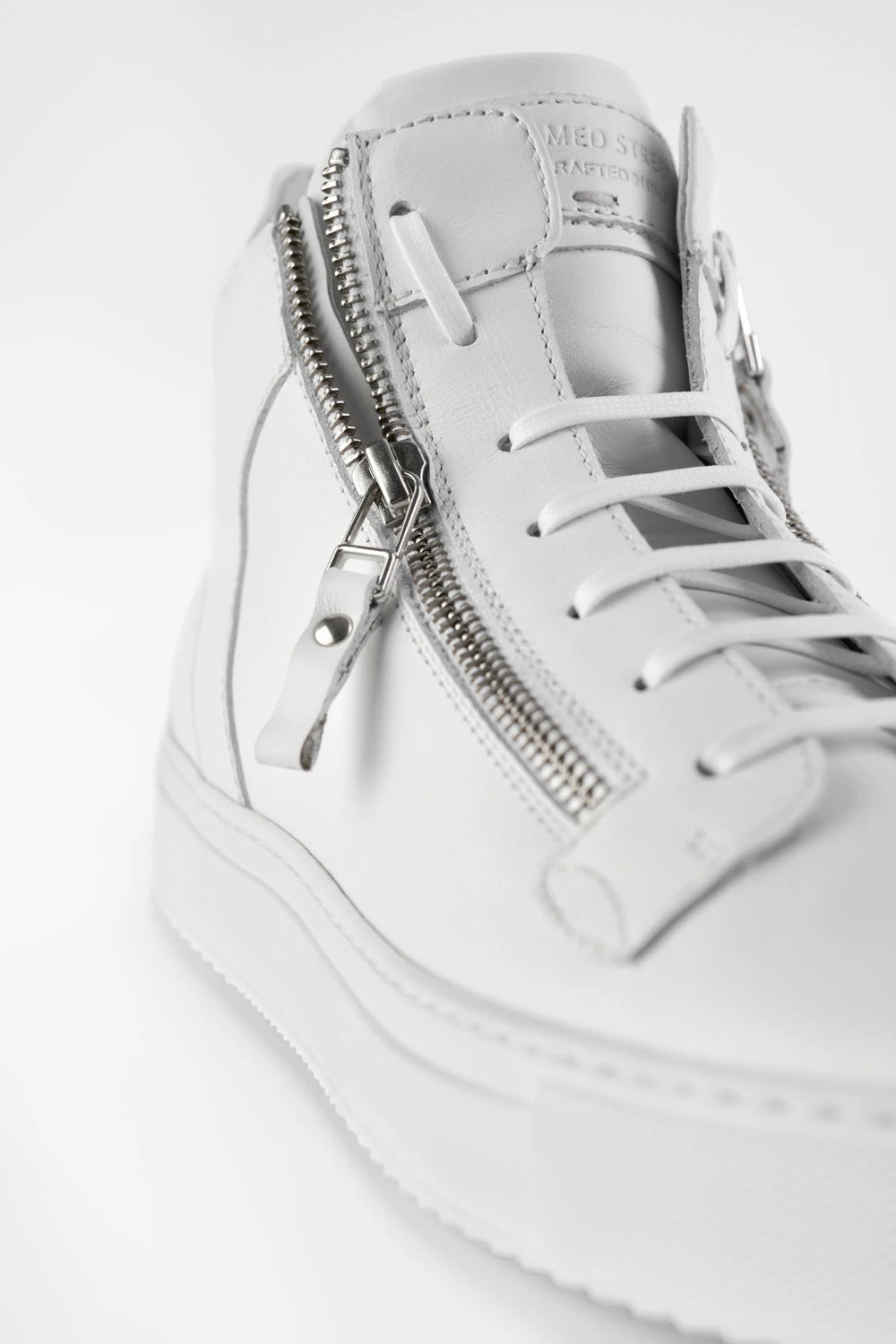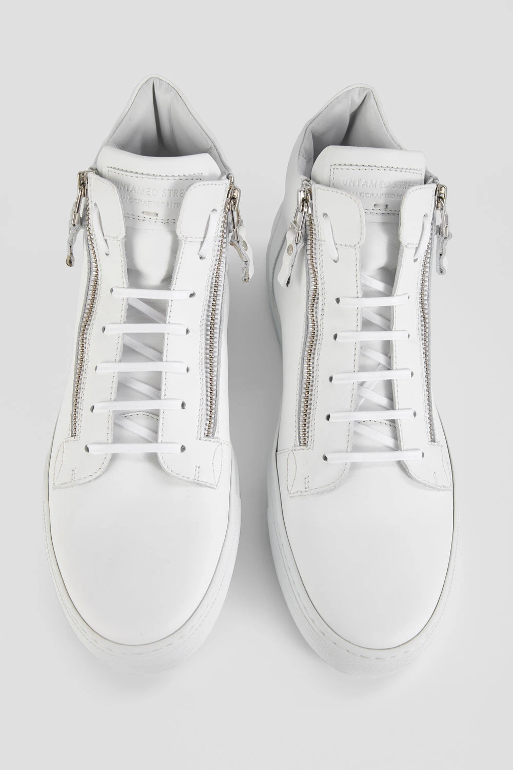 Simplicity defines elegance in this detail-oriented, white sneaker. Entirely made in Italy, hand-crafted around minimalism and urban luxury, this timeless style combines a sleek and understated silhouette with a wide-indented tread pattern outsole from Margom and a side double-zip detailing. A minimalist yet elevated sneaker, that pairs beautifully with just about everything. Unconventional elegance for the man seeking something unique.