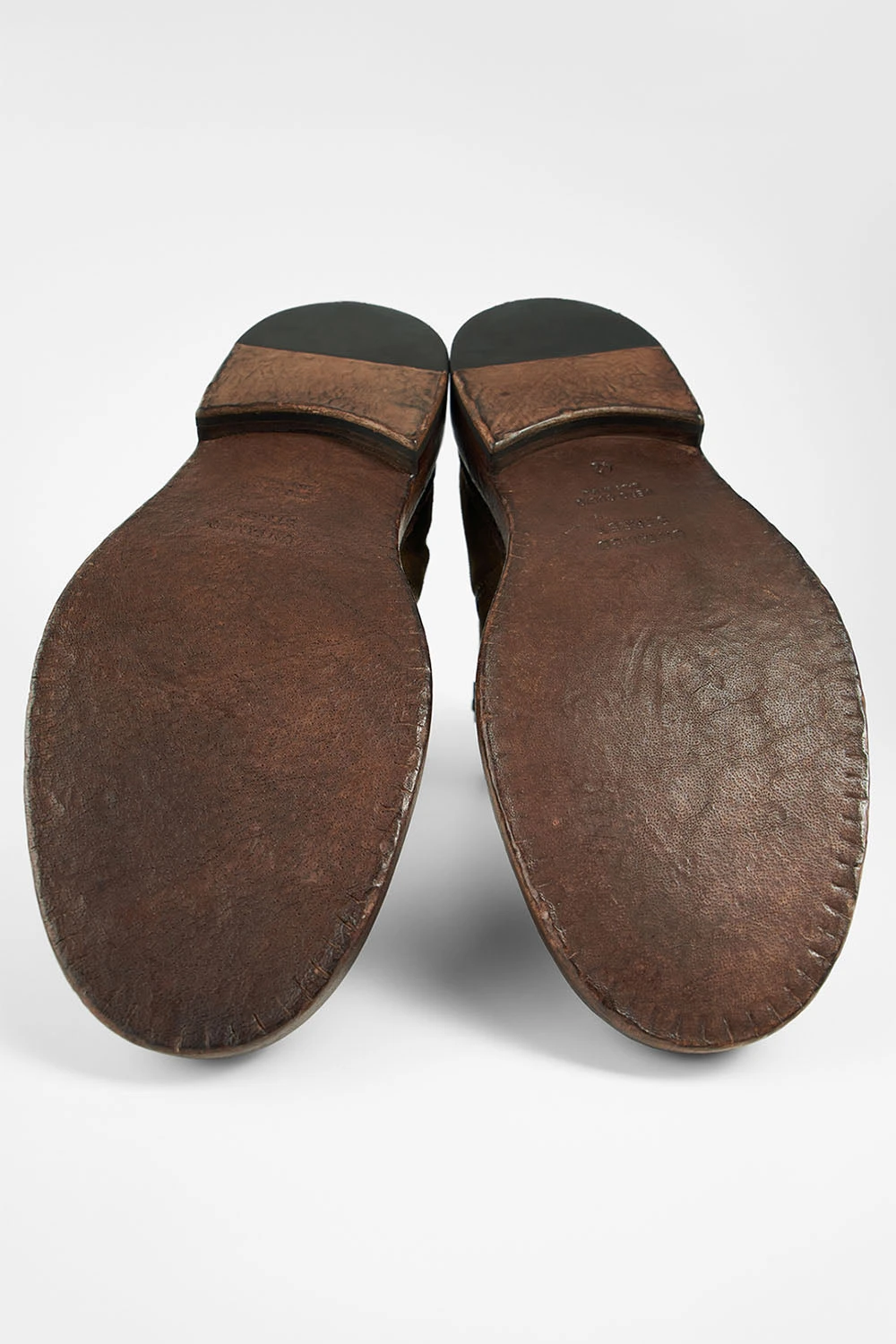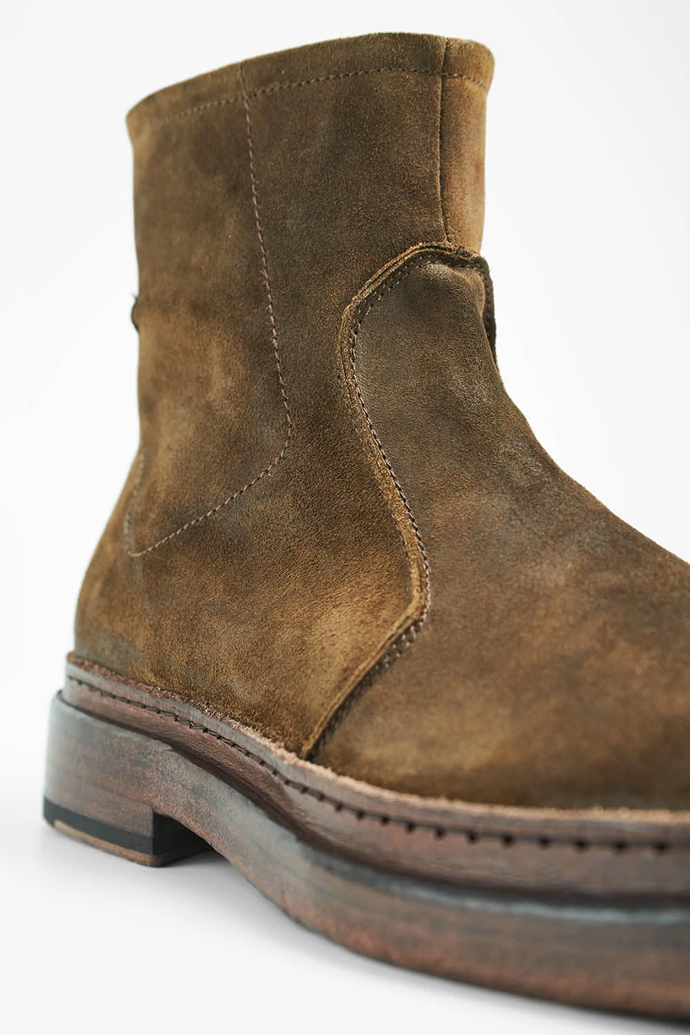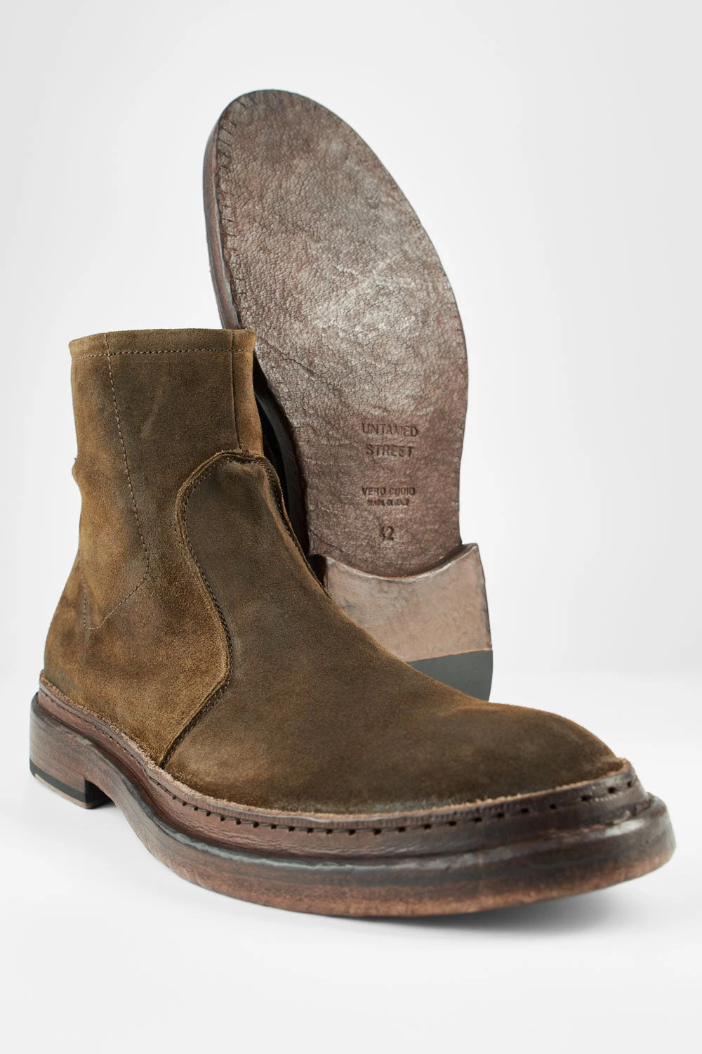 Handmade in Italy with the most exclusive Italian oiled calf suede, waxed in a barrel to make it more water resistant and durable, and to create a beautiful brown, this powerful-looking ankle boot features the sophisticated welted buffalo leather sole hallmark of our YORK collection, in contracting colour to create a truly eye catching piece.